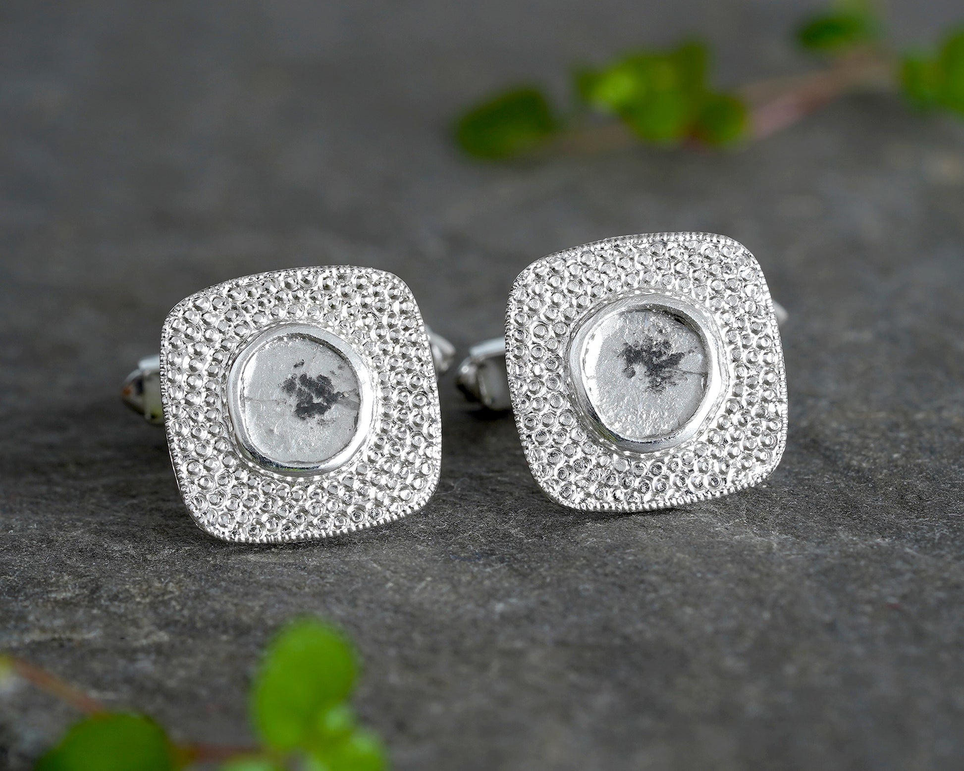 Natural Diamond Slice Cufflinks in Sterling Silver