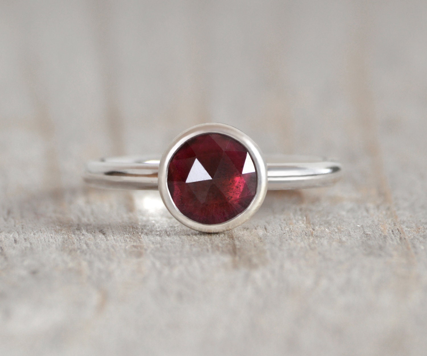 1.25ct Garnet Ring in Sterling Silver, Round Garnet Ring