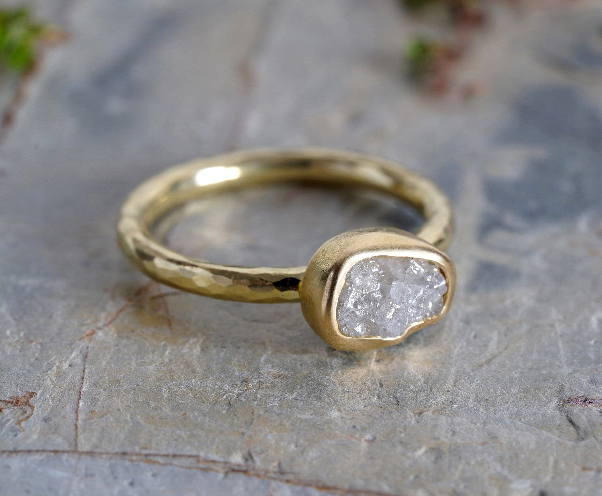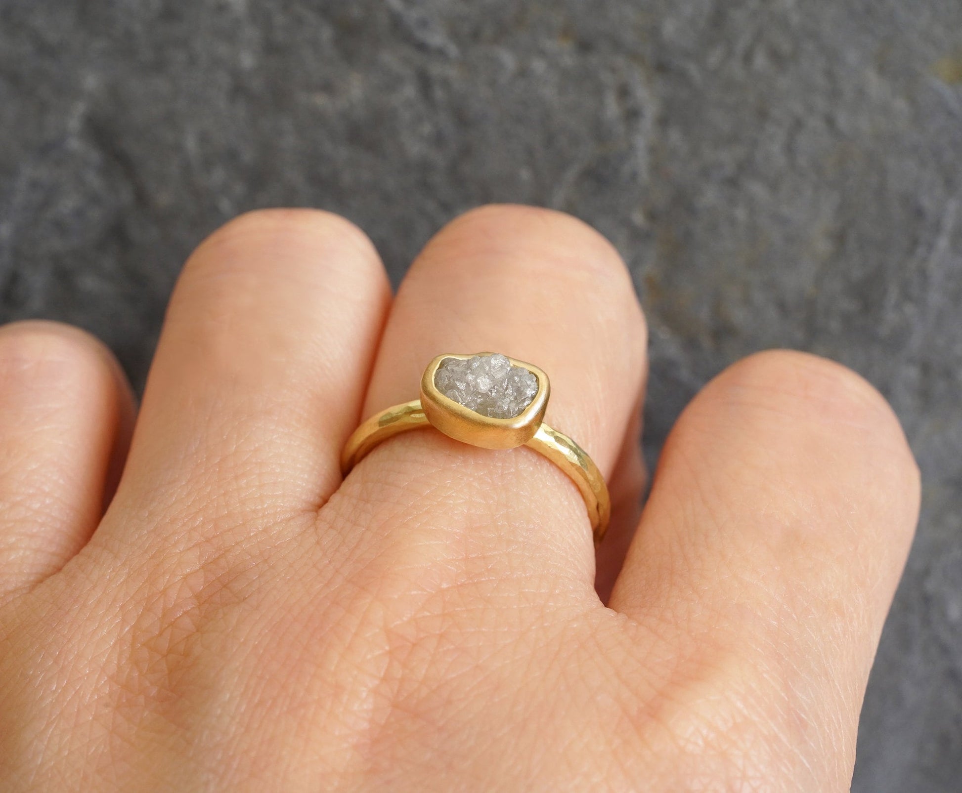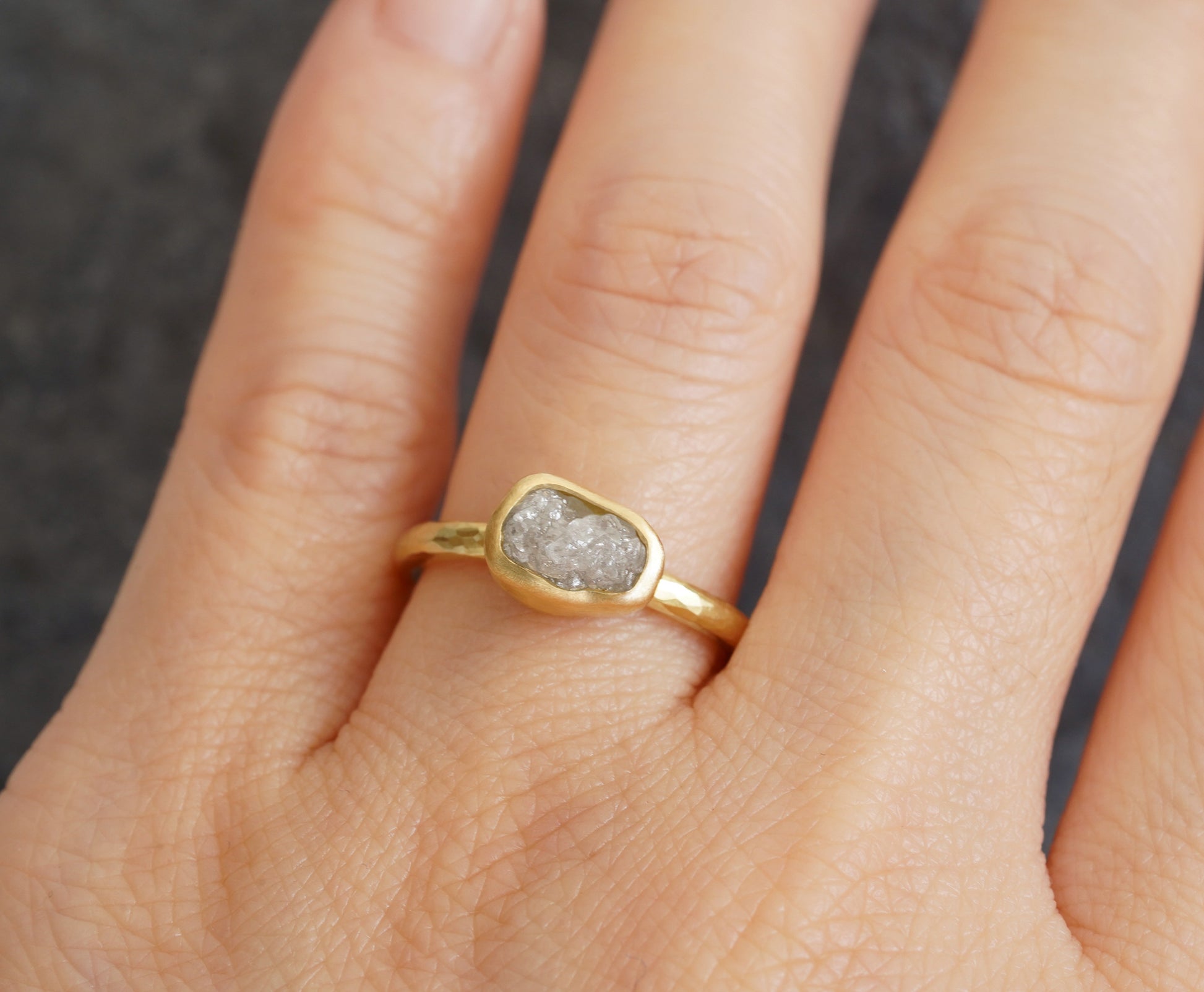 1.40ct Light Grey Diamond Engagement Ring in 18ct Yellow Gold, Rough Diamond Ring, Rustic Diamond Ring in Solid Yellow Gold
