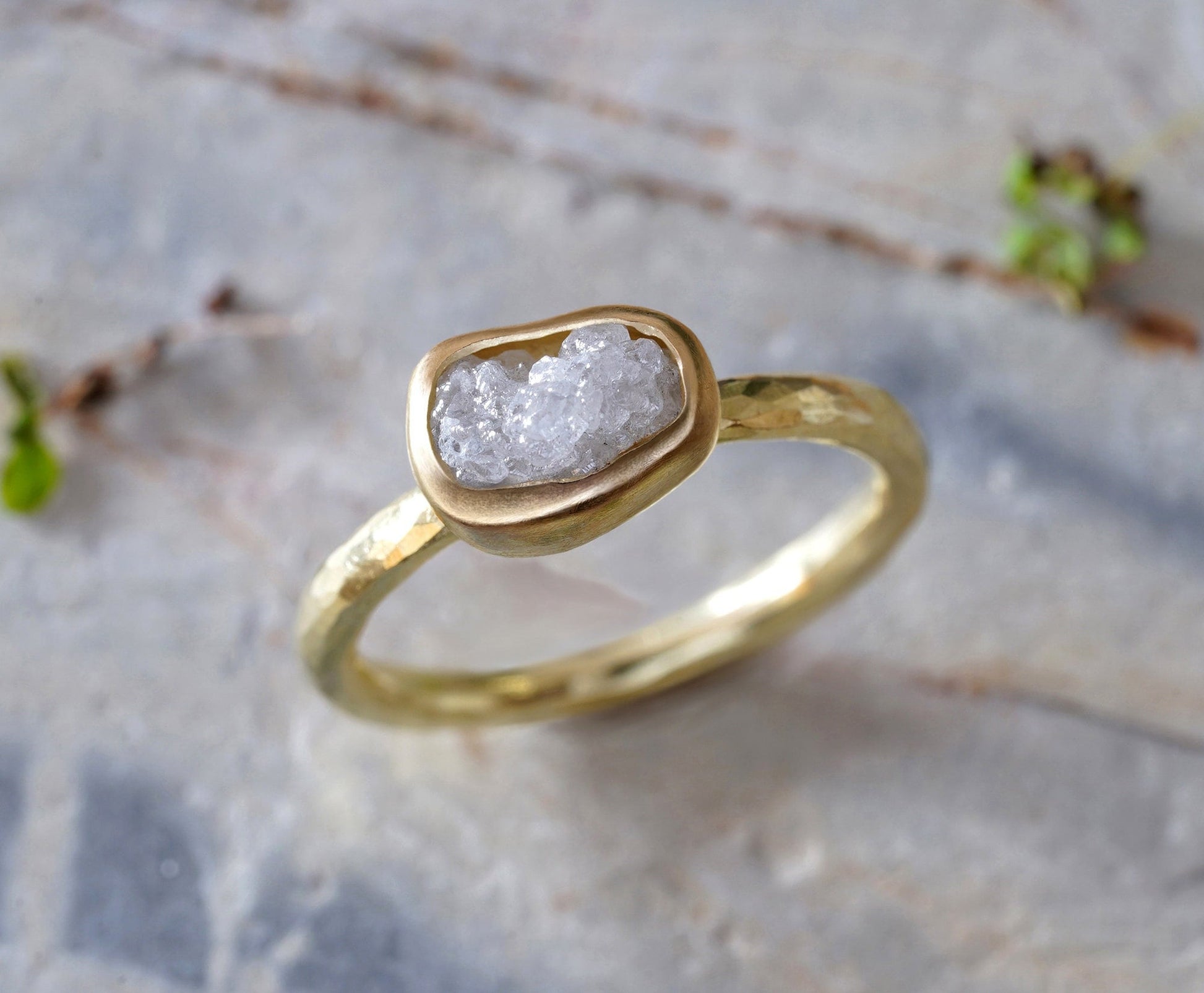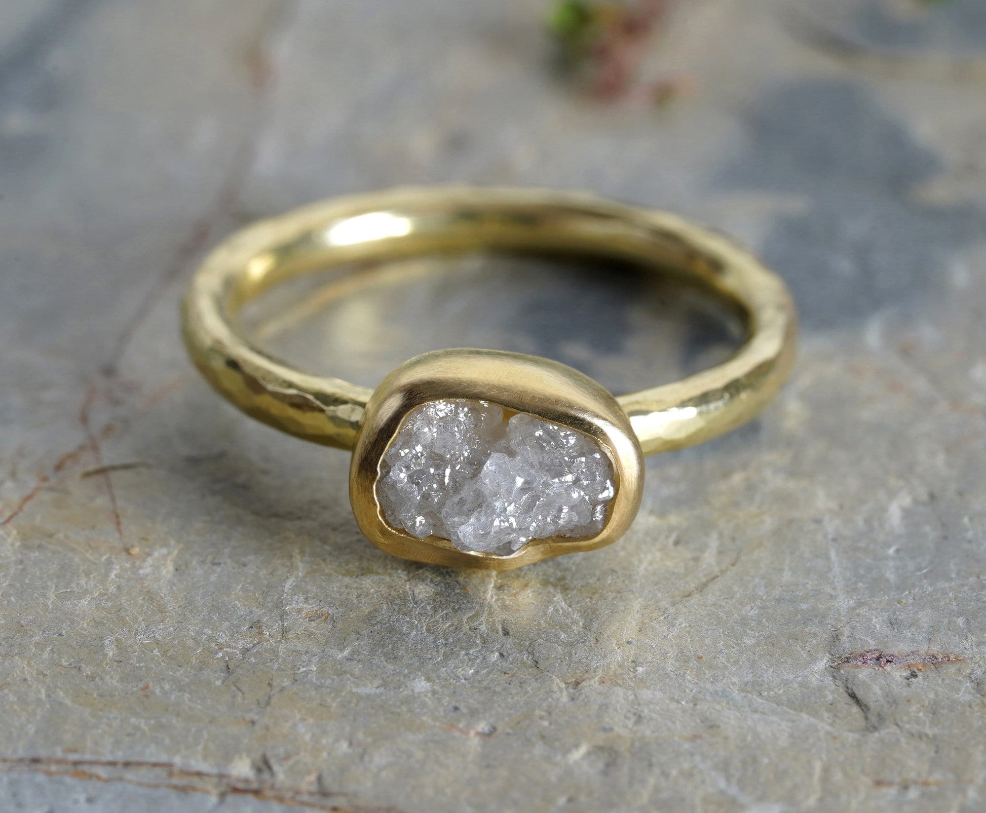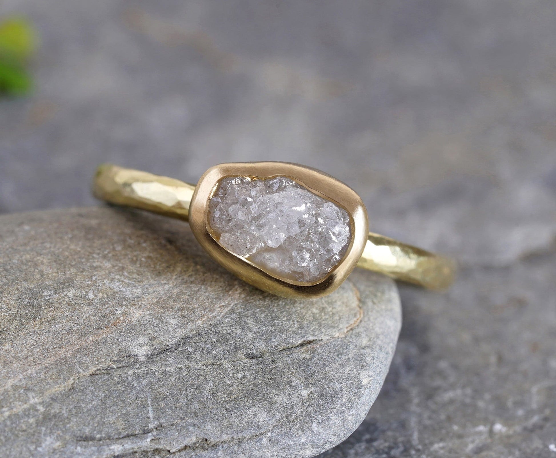 1.40ct Light Grey Diamond Engagement Ring in 18ct Yellow Gold, Rough Diamond Ring, Rustic Diamond Ring in Solid Yellow Gold