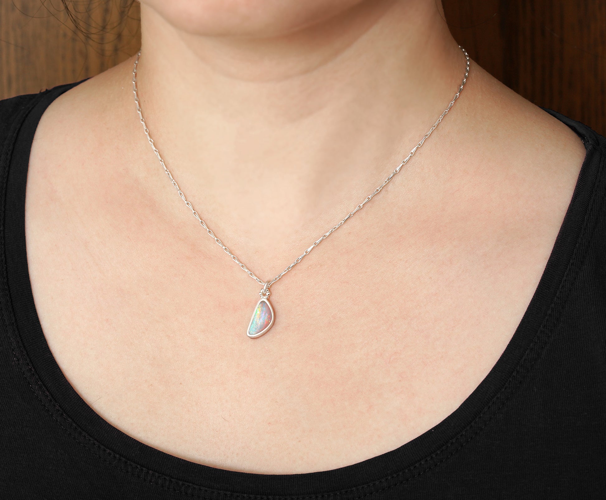 This 1.9ct Australian white opal necklace handmade at my studio in Cornwall, UK.