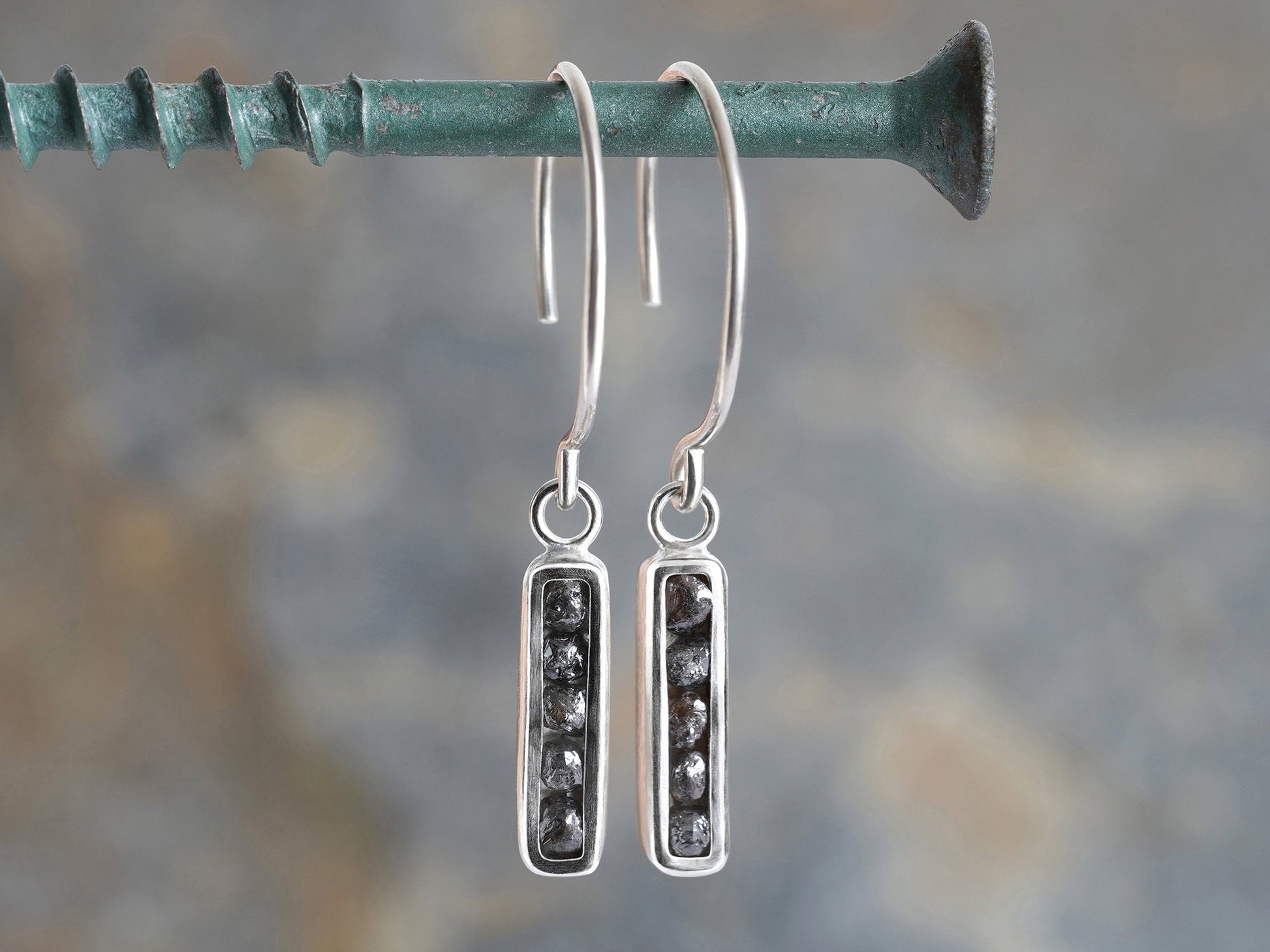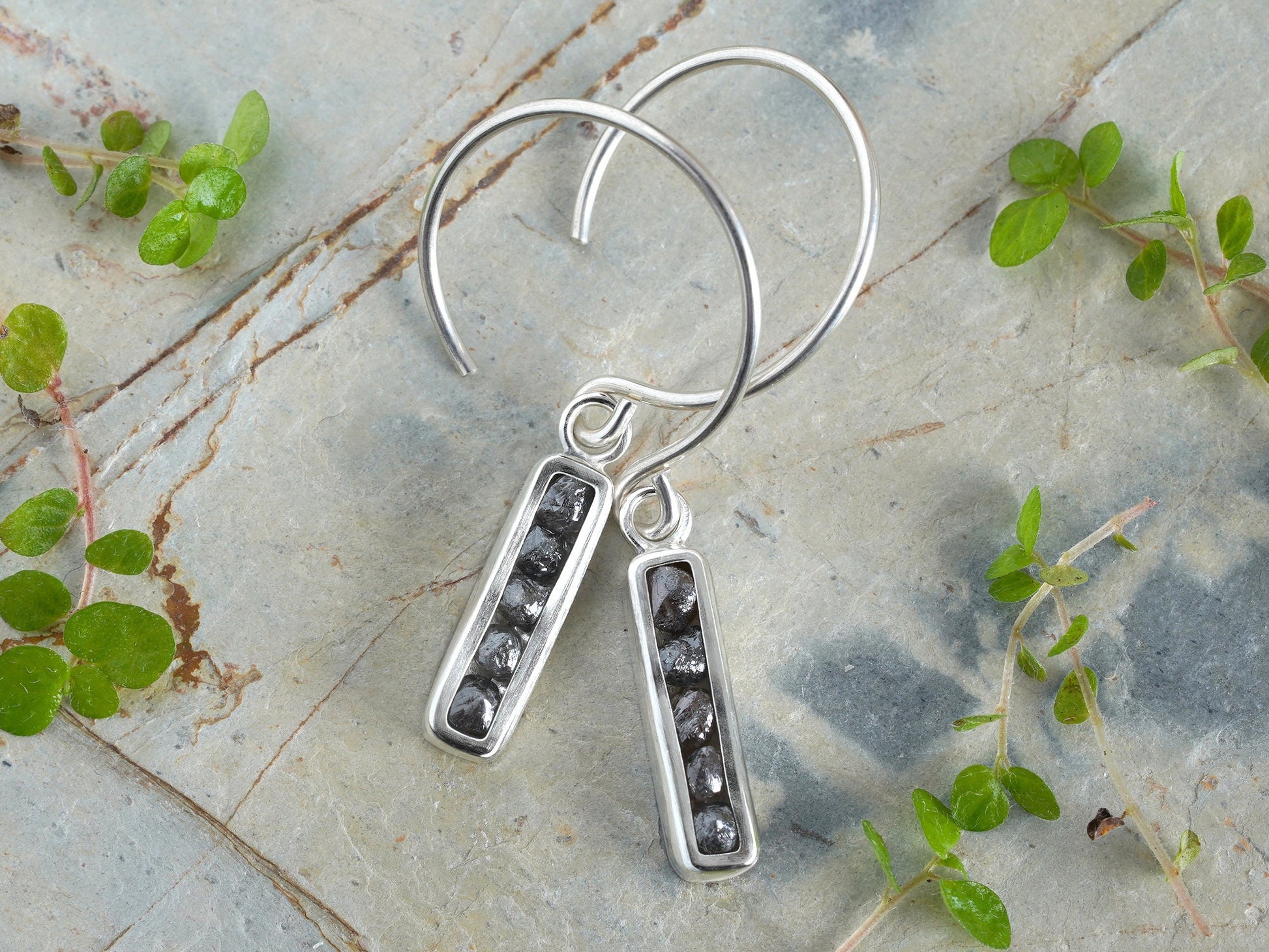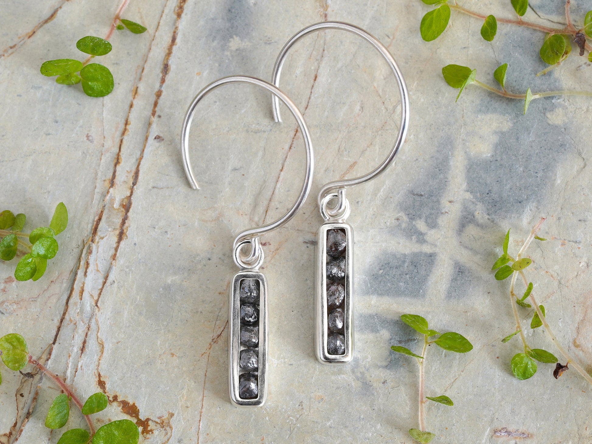 1ct Rough Diamond Earrings, Black Diamond Earrings, Channel Set Diamond Earrings