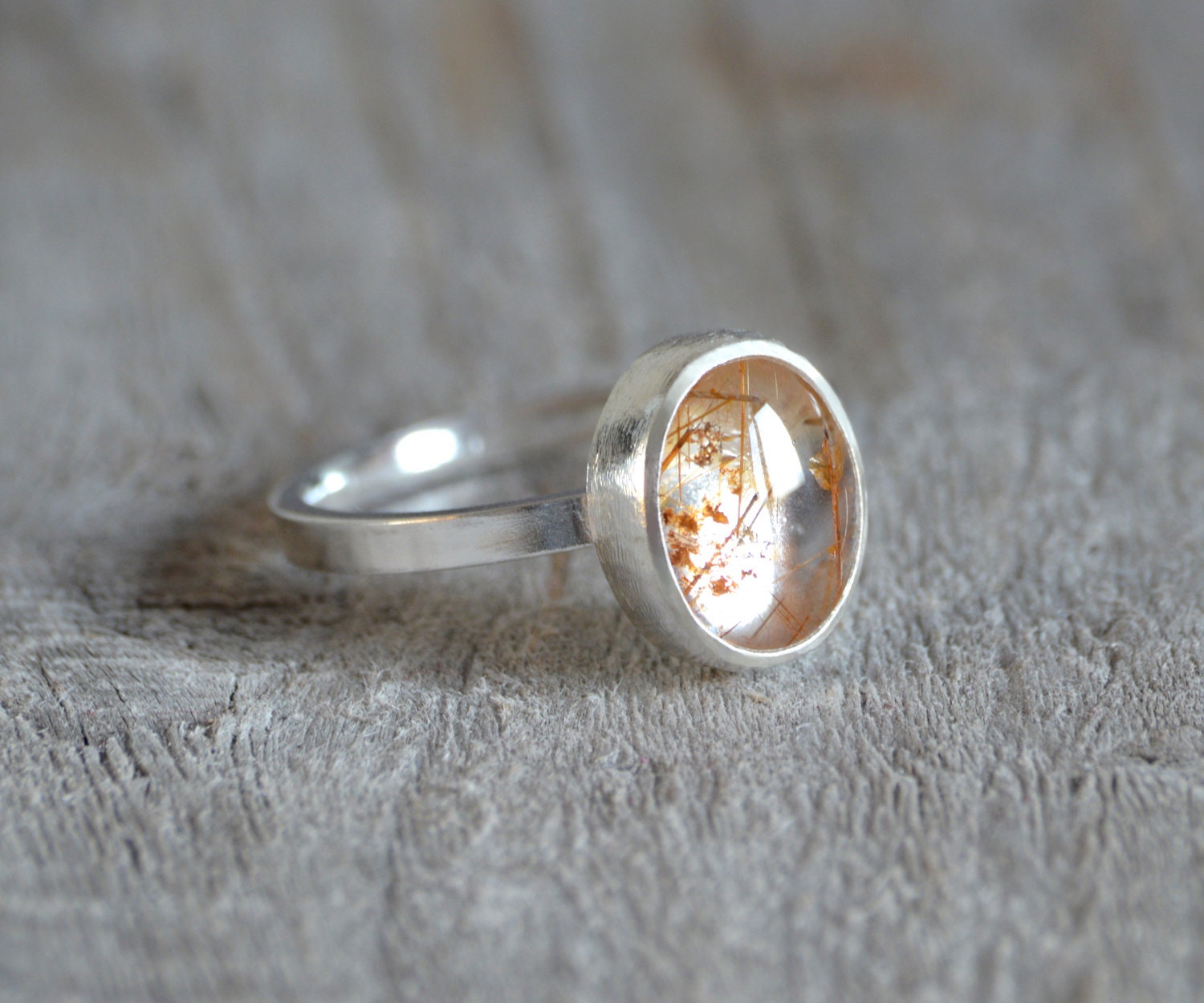 2.55ct Rutilated Quartz Ring in Sterling Silver, Oval Rutile Quartz Ring