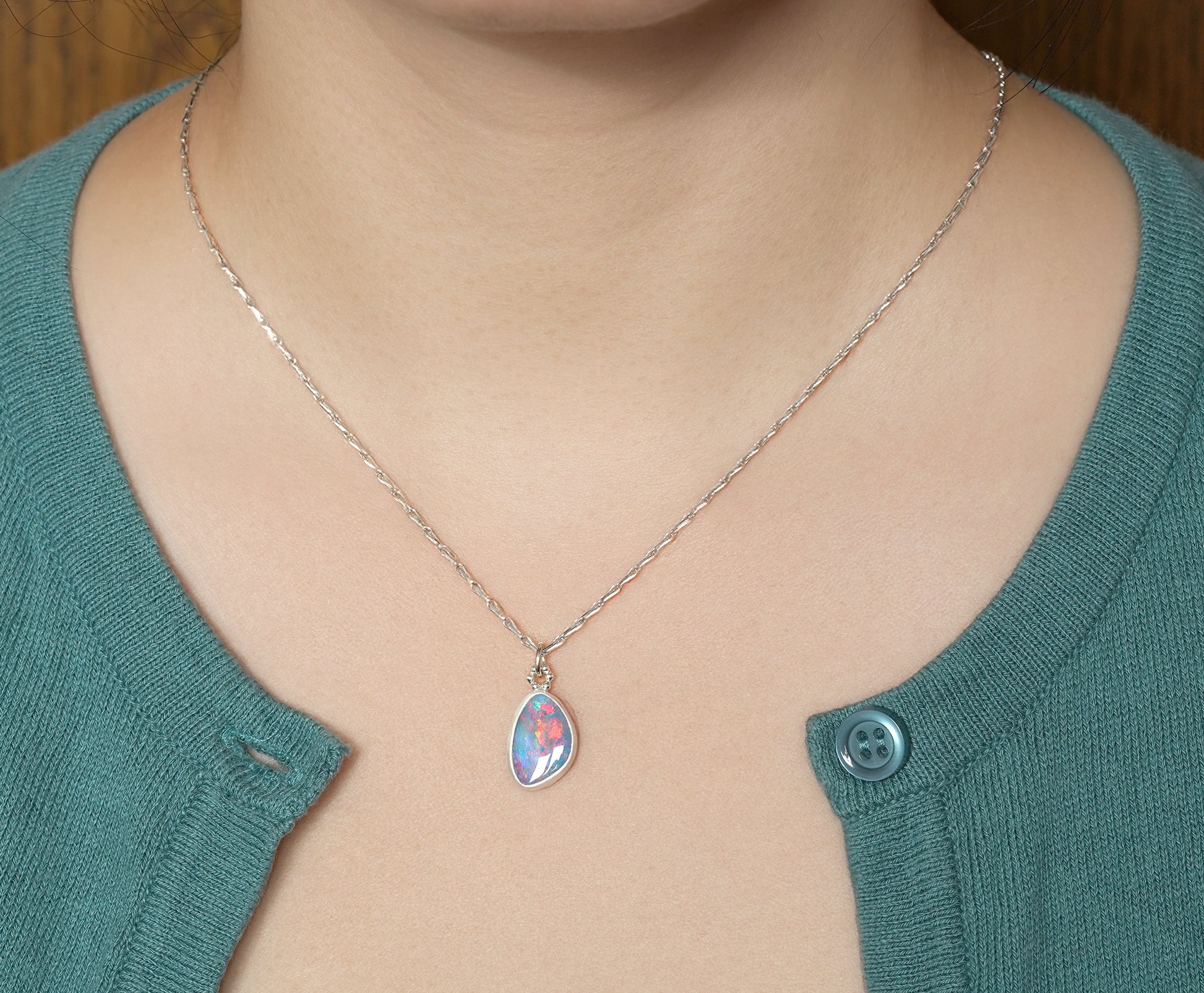As you rock the pendant, it reveals the entire colour spectrum that this opal displays.