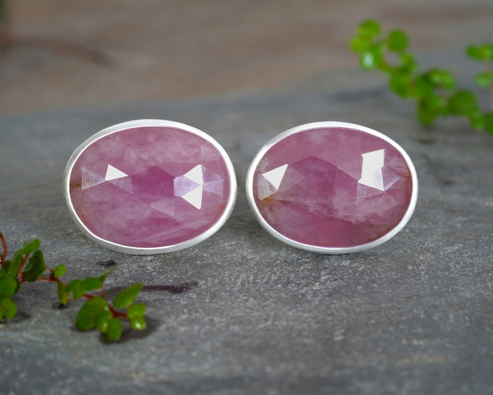 These natural pink sapphire cufflinks are handmade at my studio in the UK.