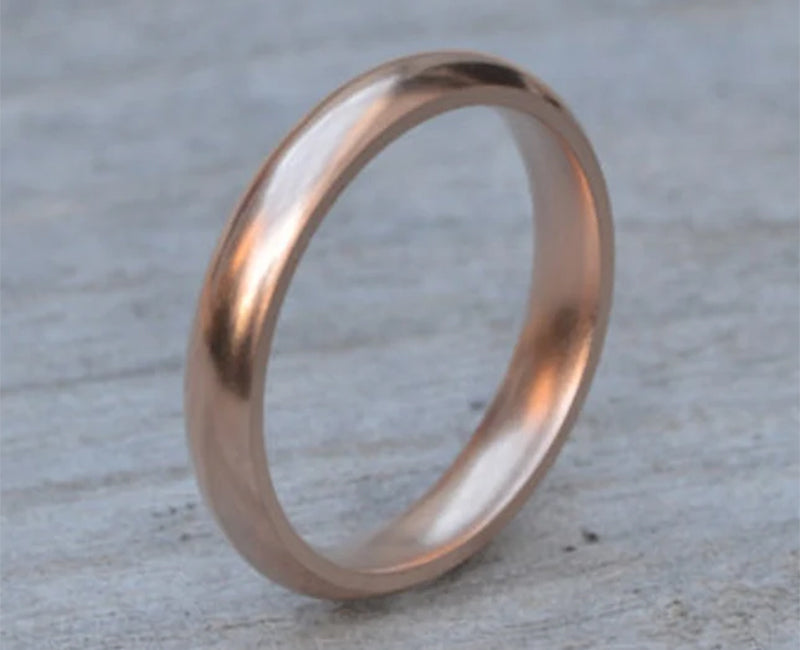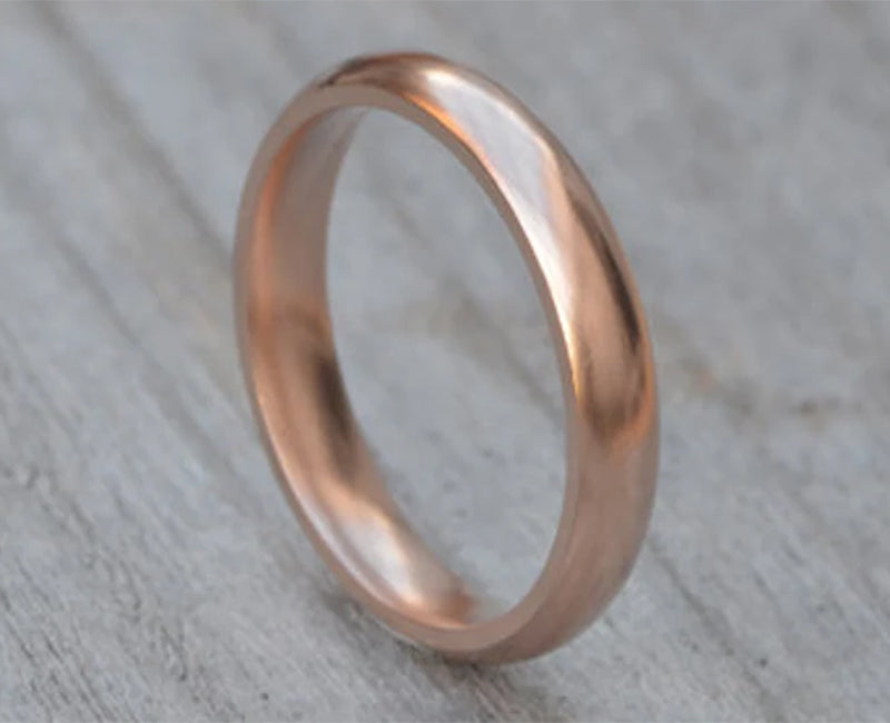 This heavy domed comfort fit 9ct rose gold wedding band is made to order to fit your personal size. Please confirm your ring size at checkout.