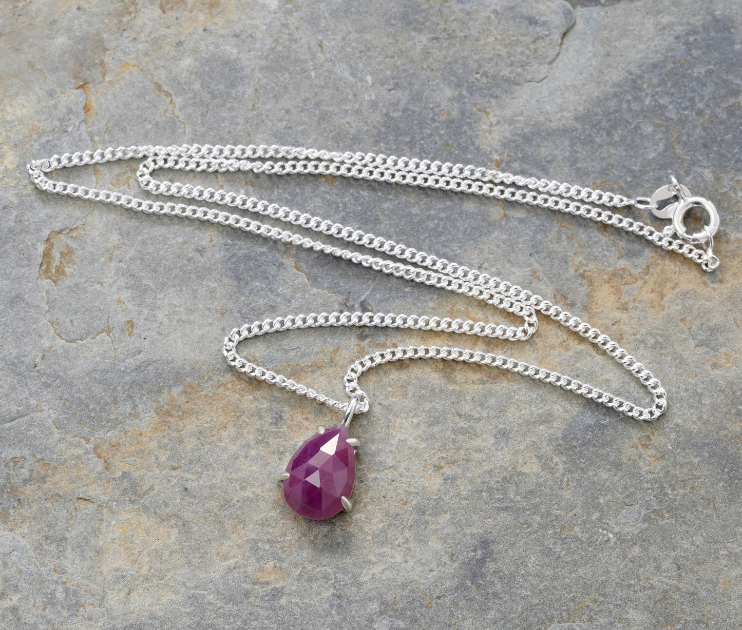 This pink sapphire necklace is handmade at my studio in the UK and is ready to ship.