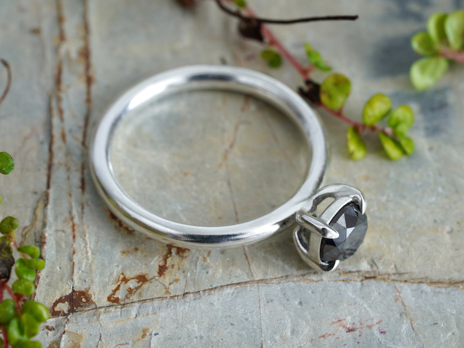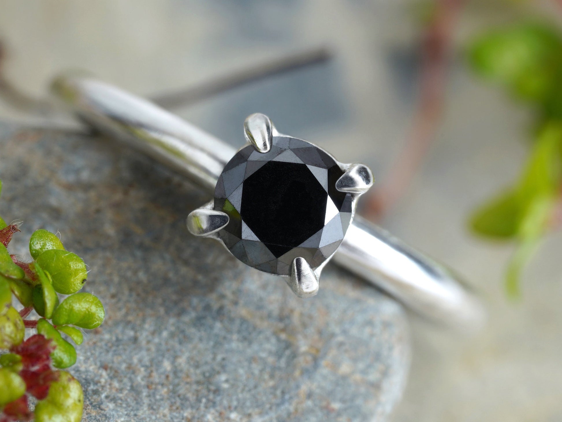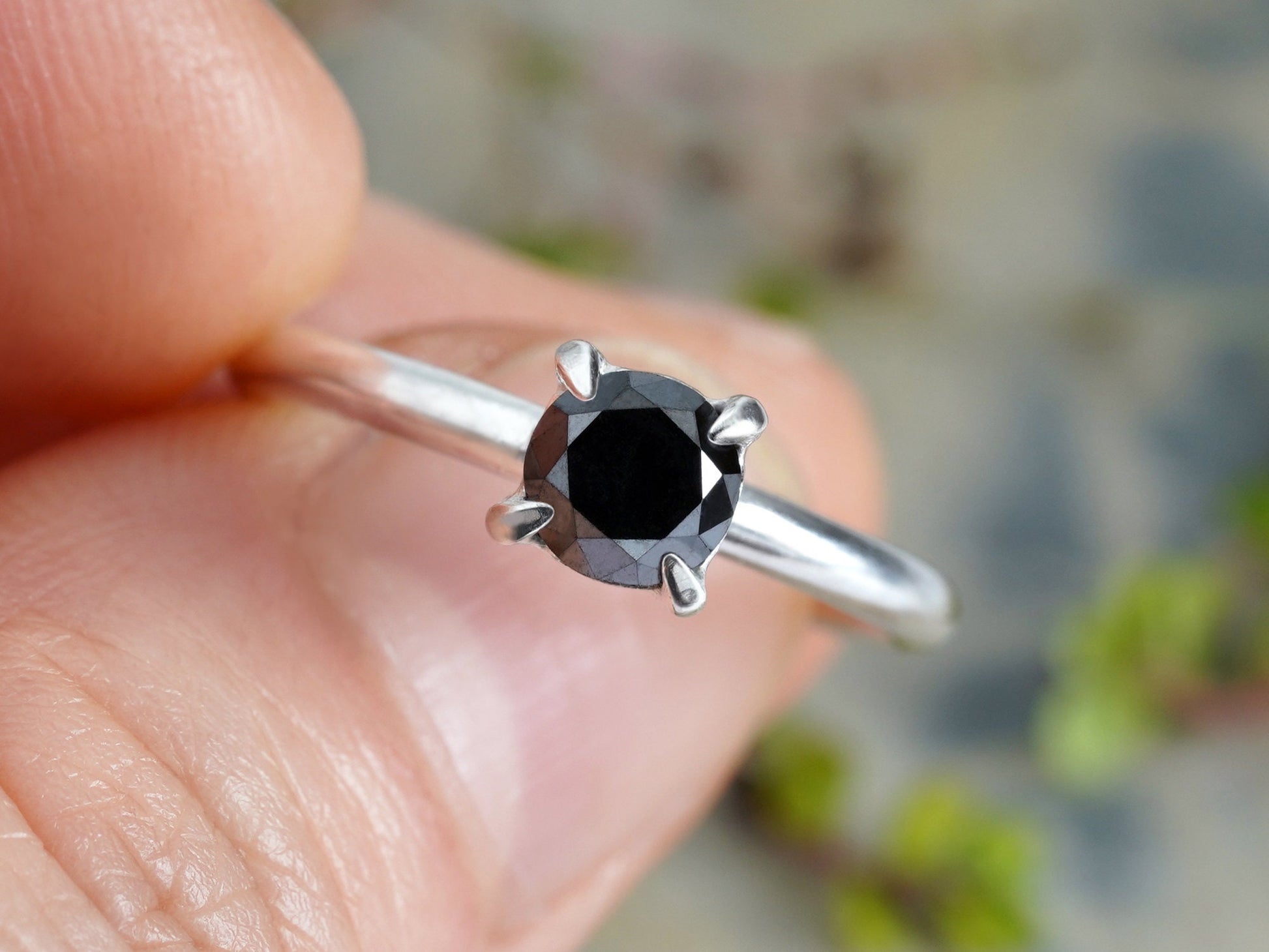 5mm Black Diamond Engagement Ring, 0.70ct Black Diamond Ring, Round Diamond Solitaire Ring
