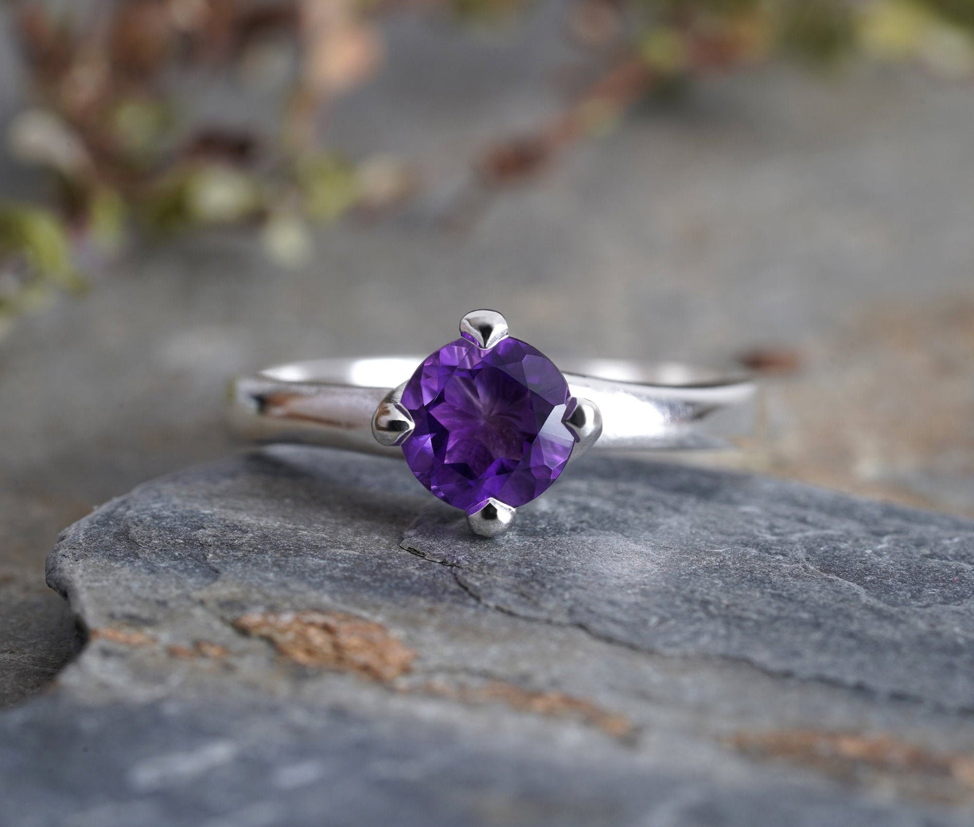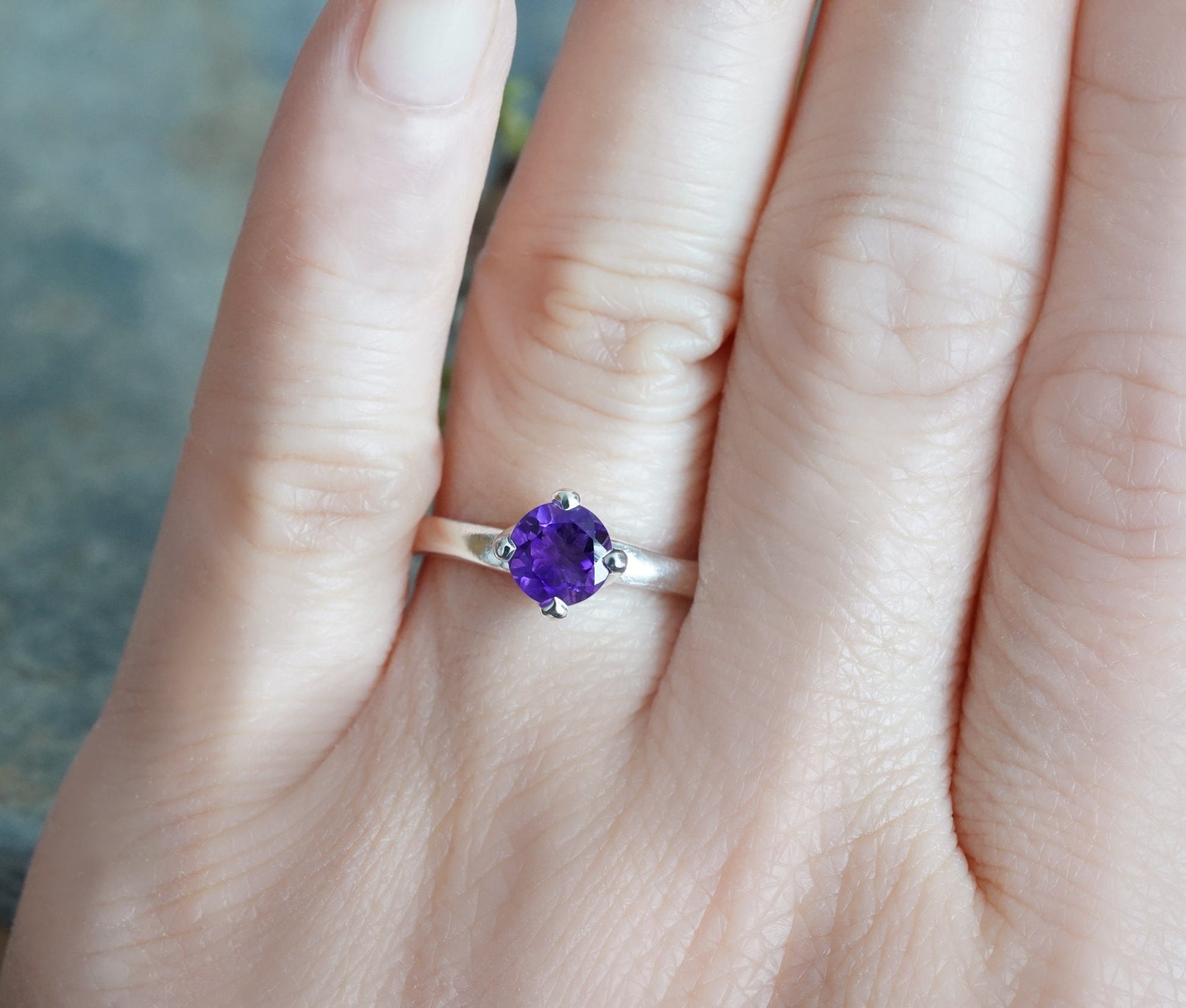 6mm Amethyst Ring in Sterling Silver, Amethyst Solitaire Ring, February Birthstone Ring, UK size L (US size 5.75)