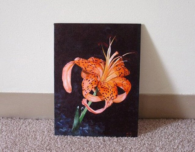 A Blooming Tiger Lilly, Original Acrylic Painting by Huiyi Tan