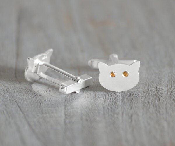 Cat Cufflinks with Citrine Eyes, Cat Lover Cufflinks