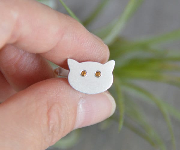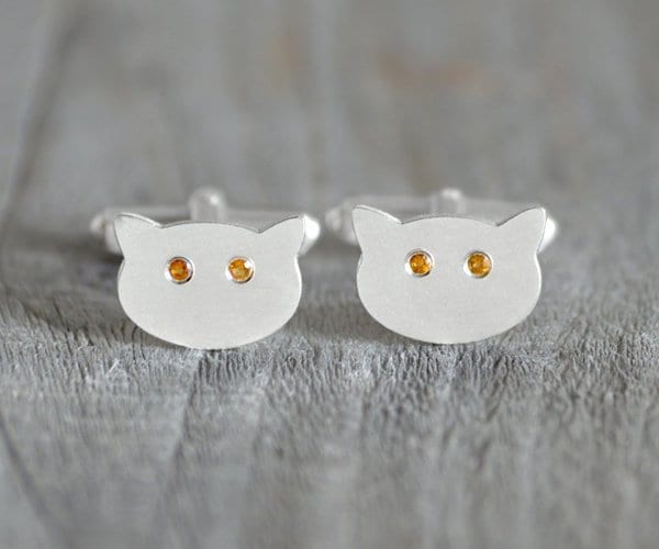 These cat cufflinks with citrine eyes are handmade at my studio in the UK.