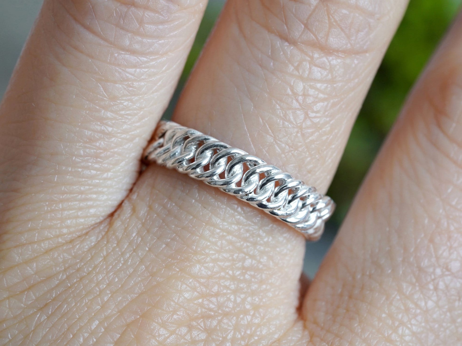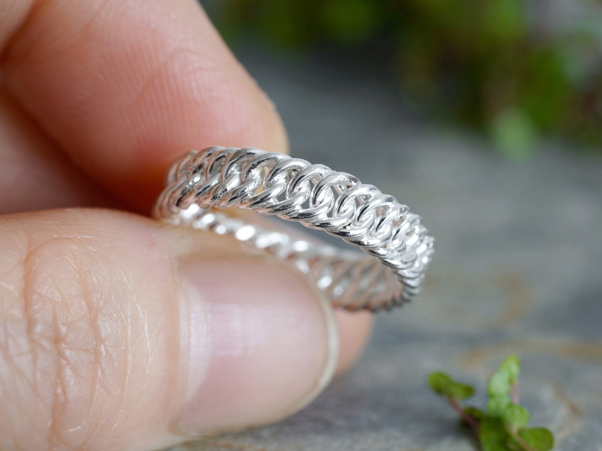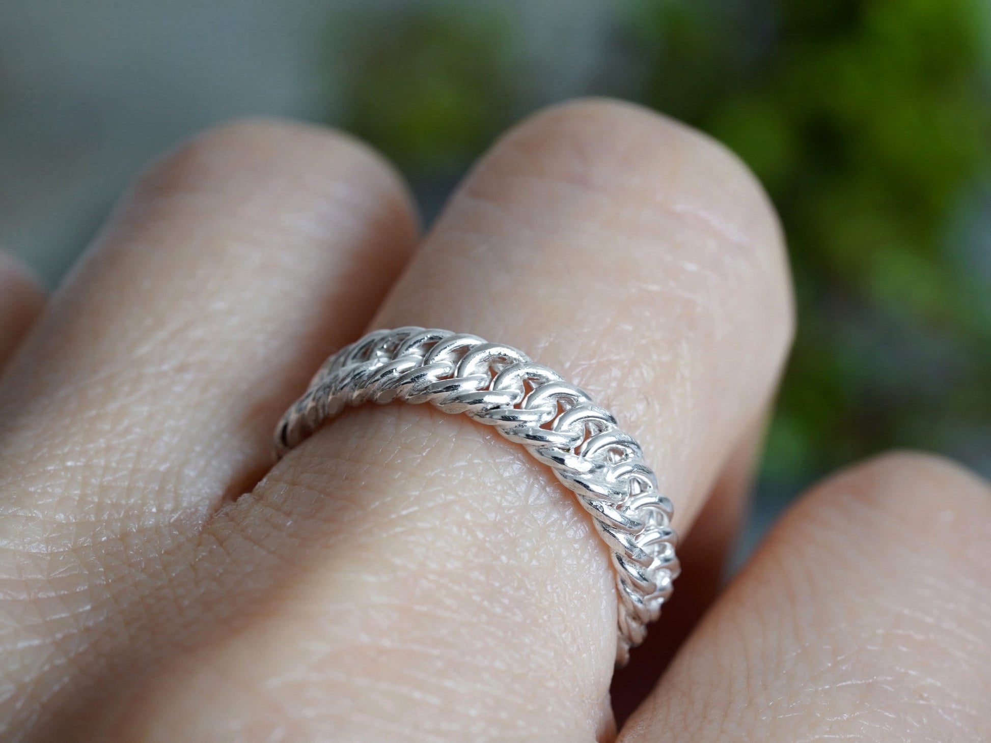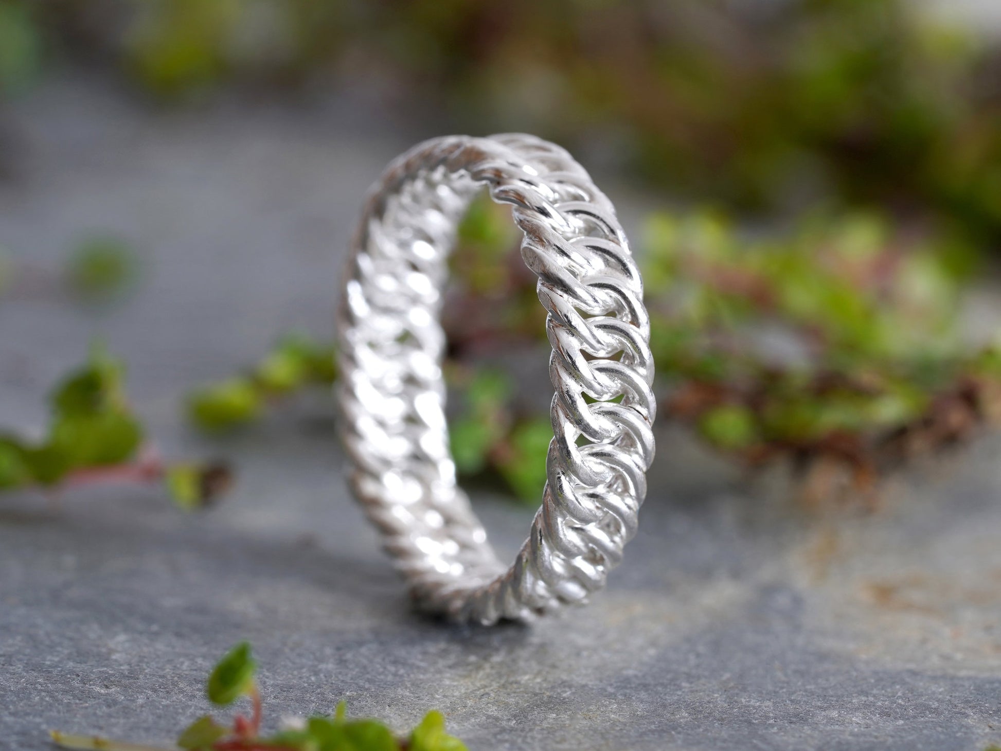 Curb Chain Ring in Sterling Silver, 4.5mm Chain Ring in UK size L (US size 5.75)