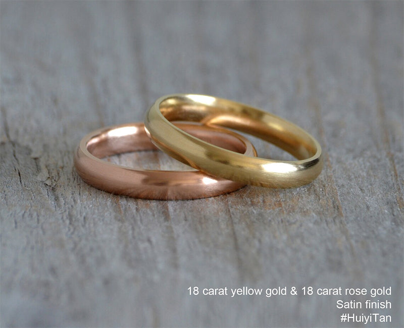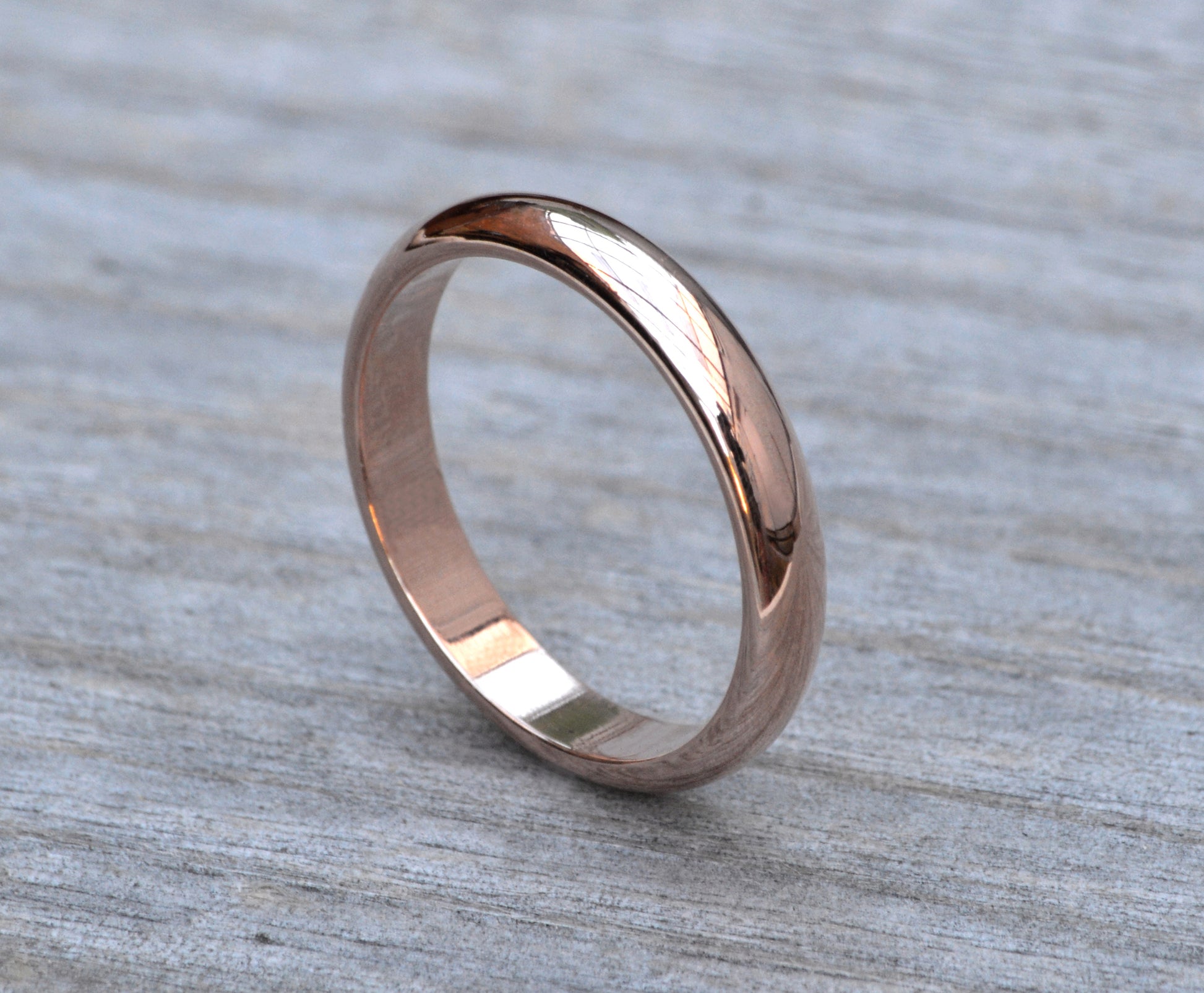 D Shape Wedding Band, Rose Gold Wedding Ring, 3mm, 4mm Wedding Band