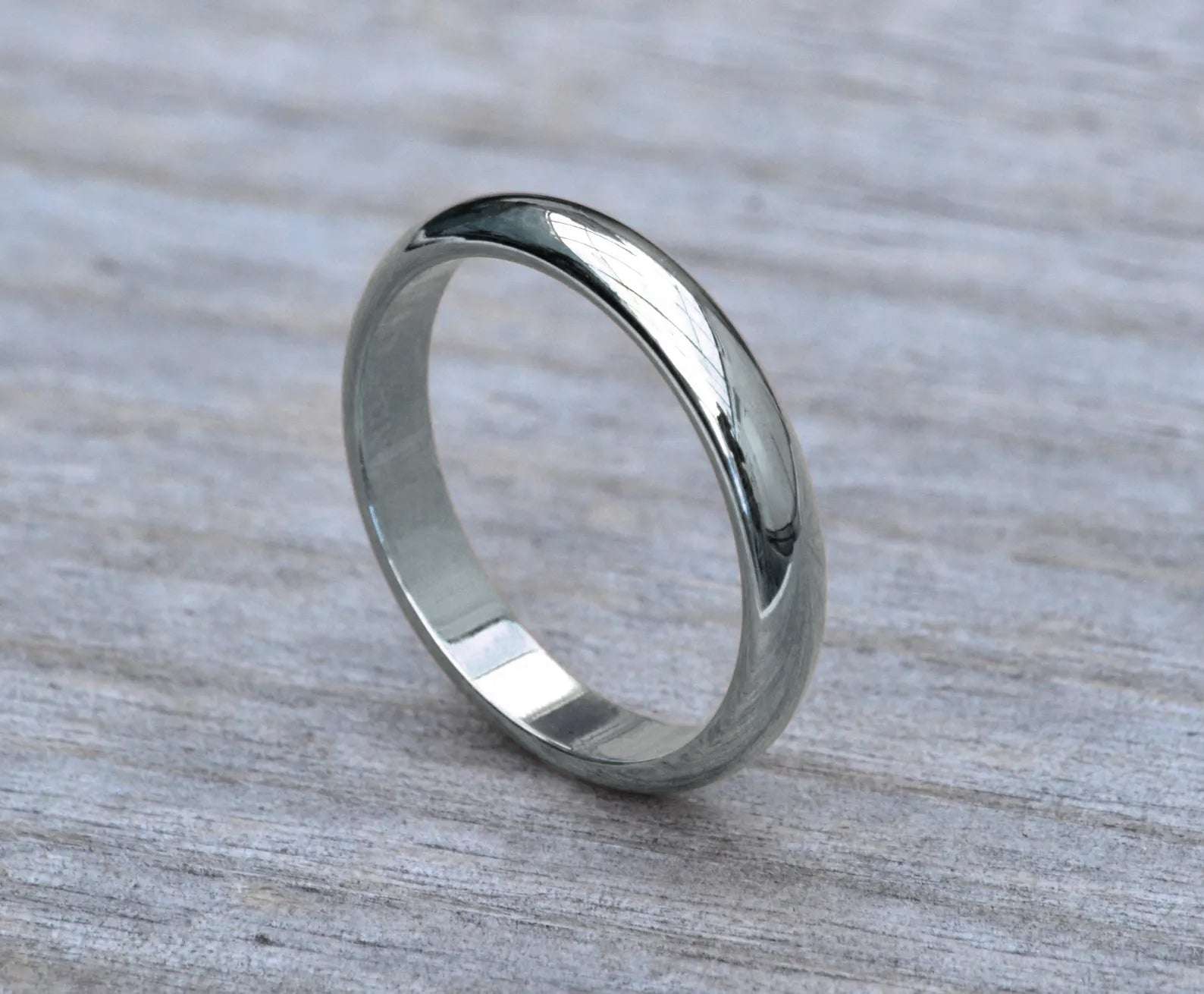 D Shape Wedding Band in Sterling Silver, 3mm Wide Ring