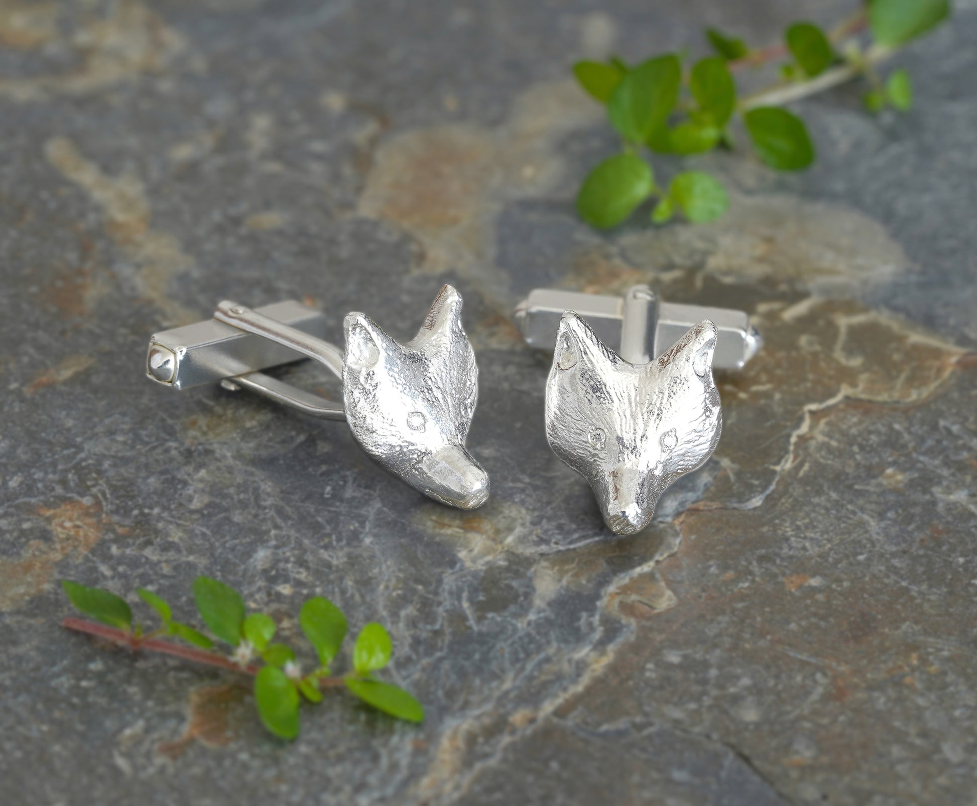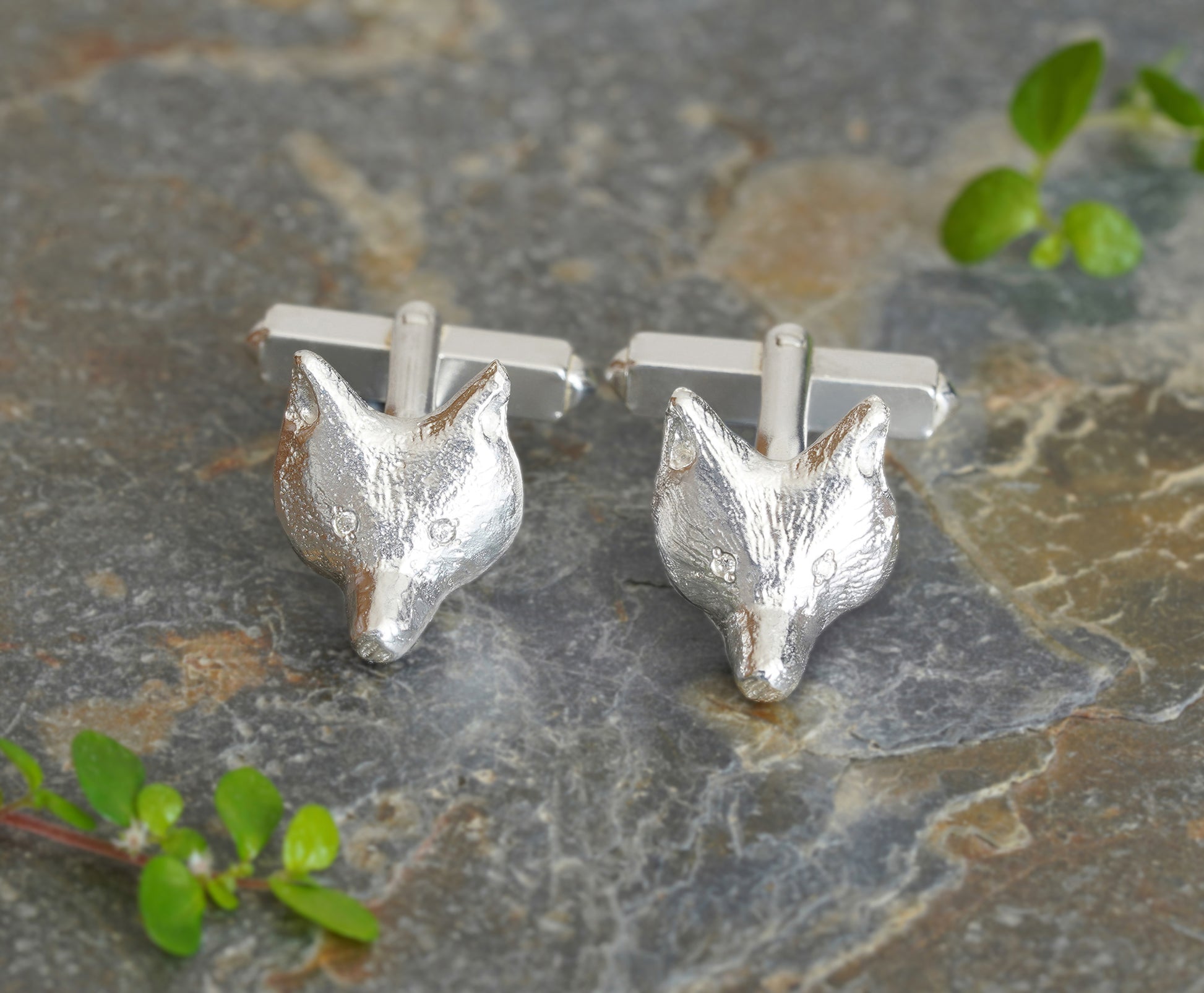 These diamond fox cufflinks are handmade at my studio in Cornwall, the UK.