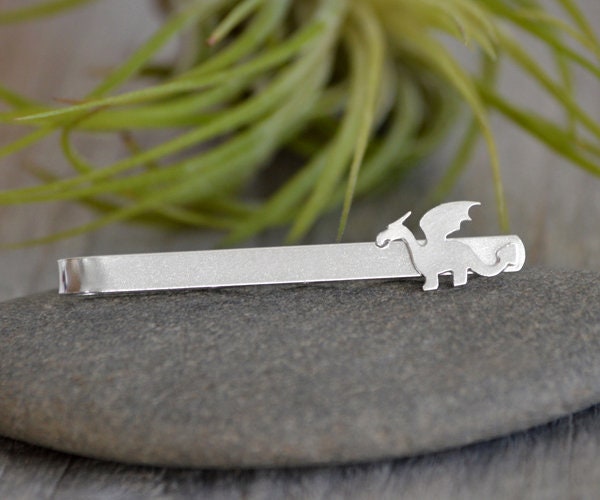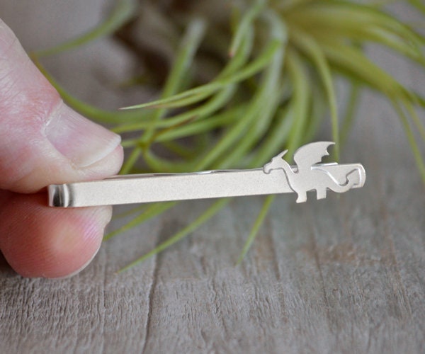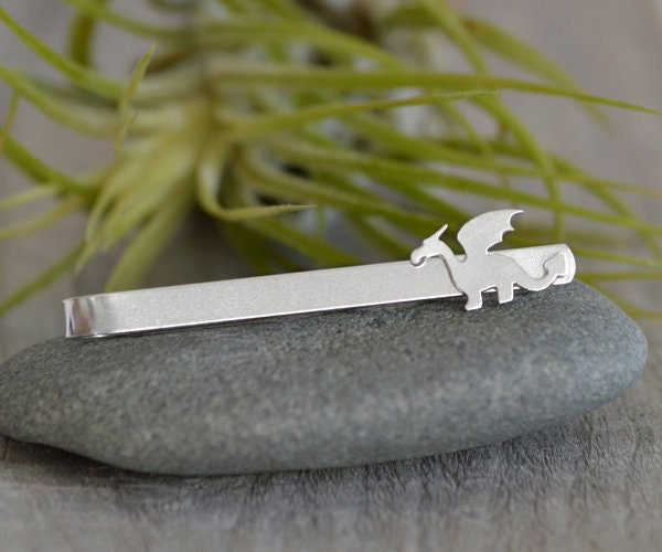 Dragon Tie Clip in Solid Sterling Silver, Personalized Tie Clip, Silver Dragon Tie Slide