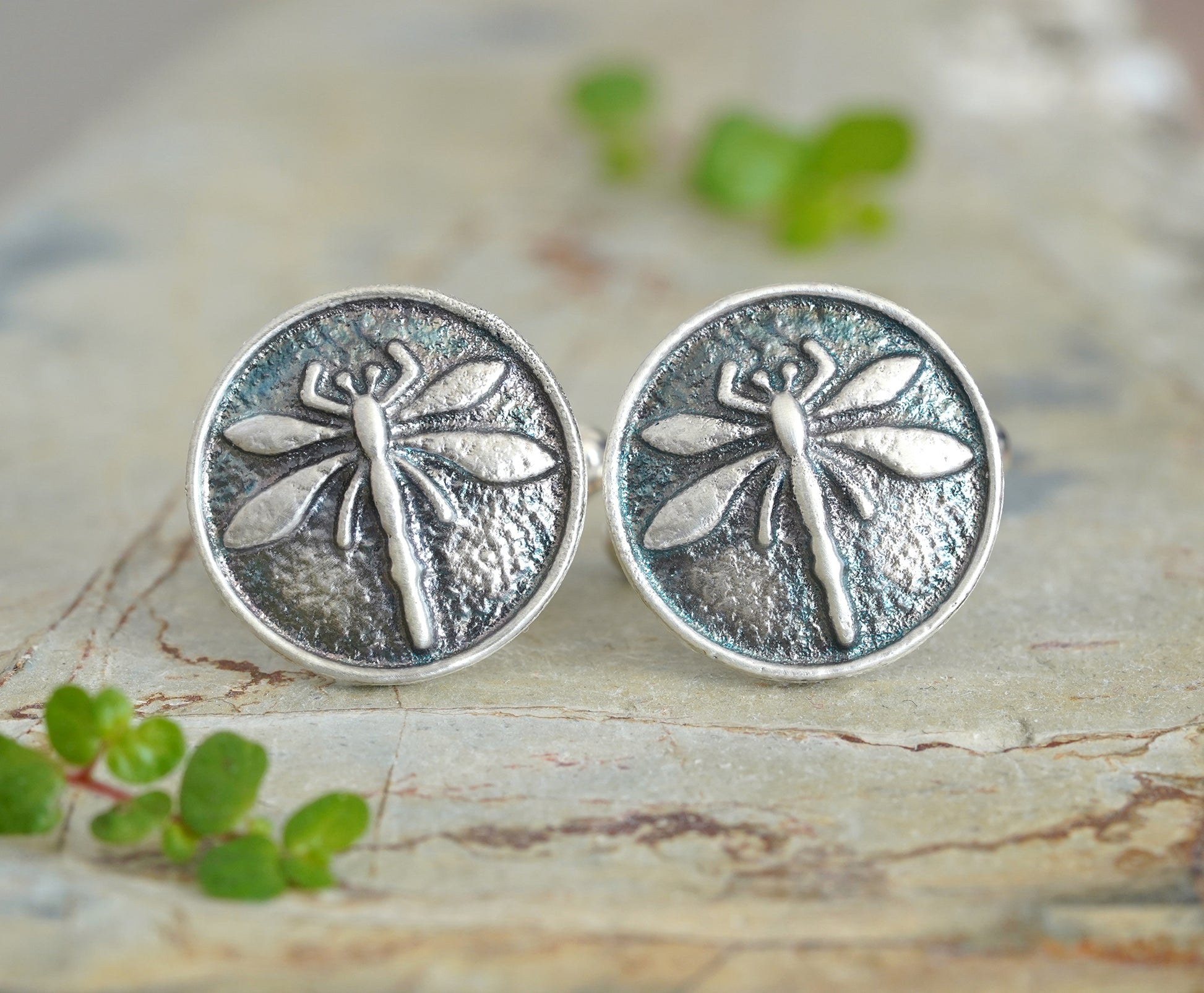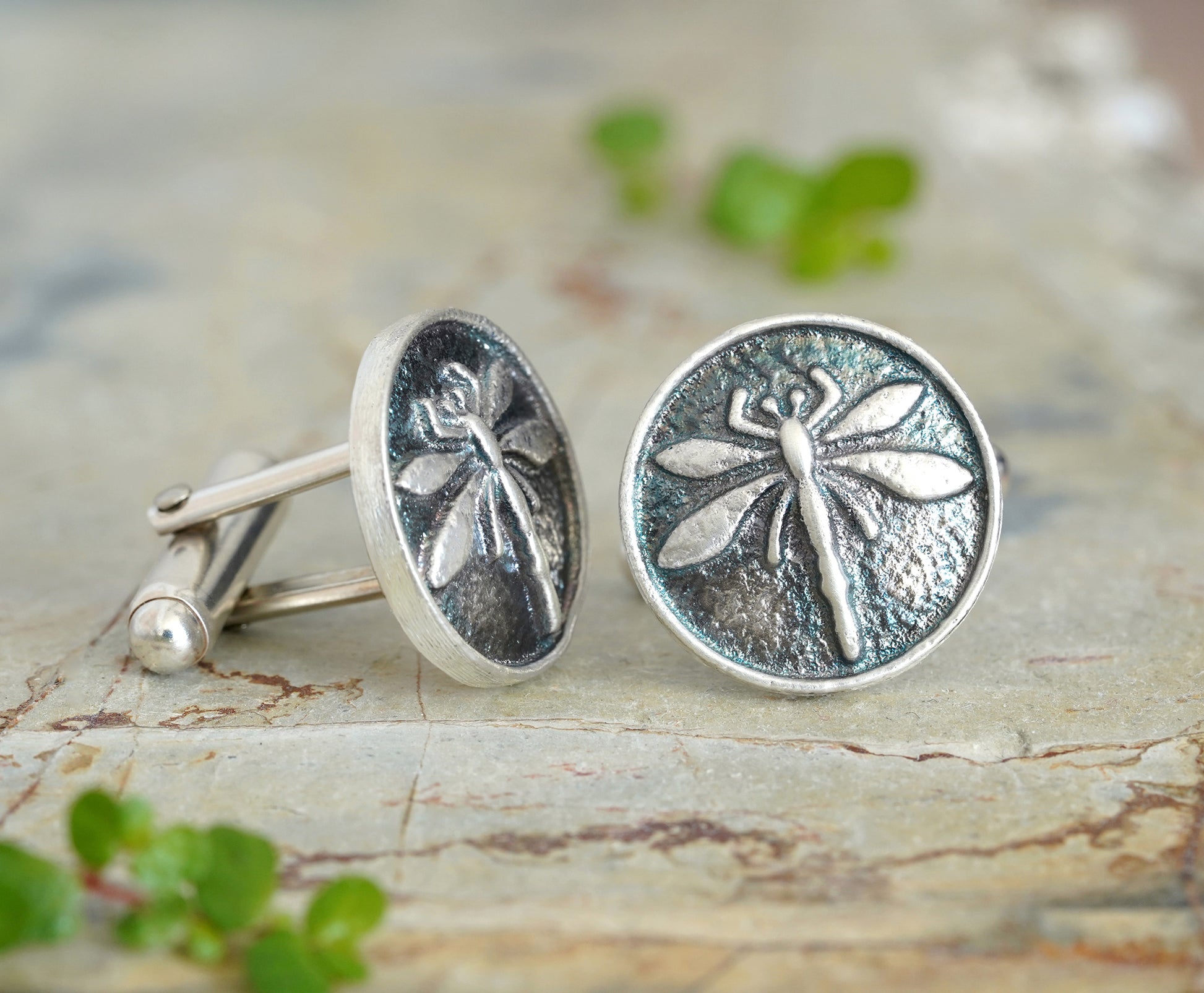 These dragonfly cufflinks are handmade at my studio in Cornwall, UK.