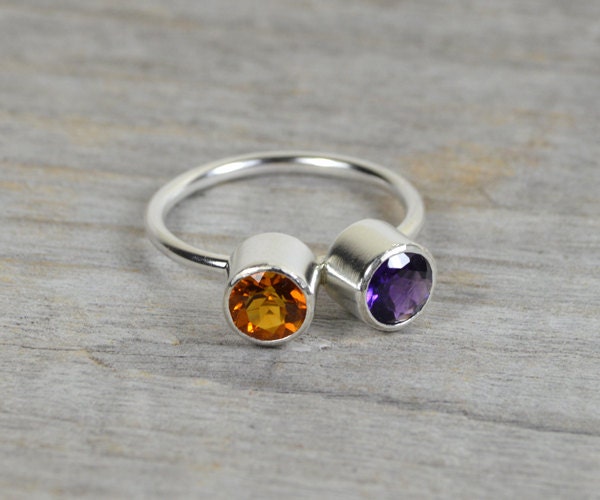 Duo Birthstone Ring, Amethyst and Citrine Ring in Sterling Silver, UK size J 1/2 (US size 5)