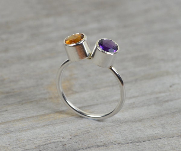 This amethyst and citrine duo ring is handmade at my studio in England.