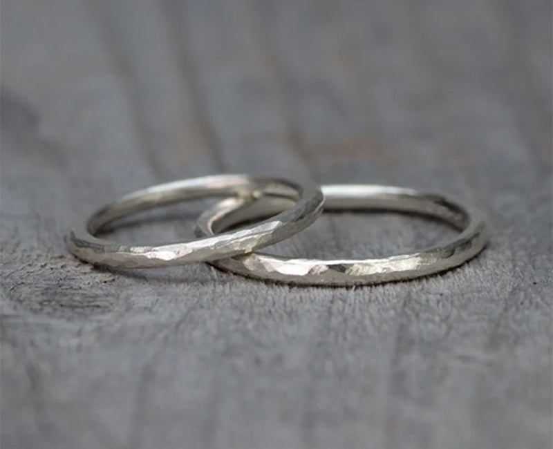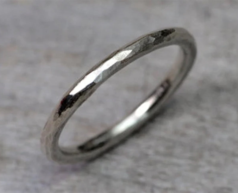 Hammered Effect Wedding Band, 2mm Rustic Wedding Ring