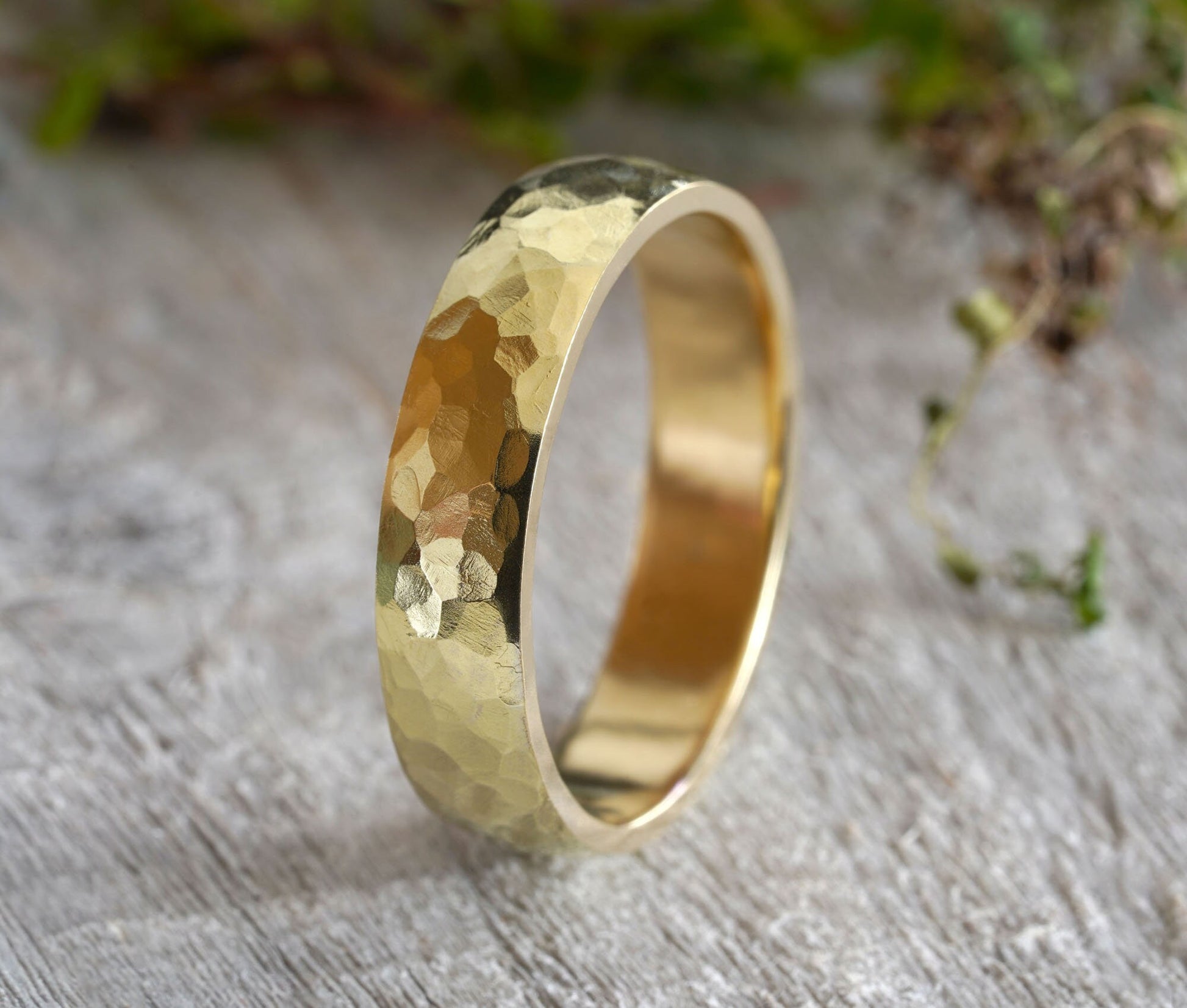 Hammered effect Wedding Ring in 18k Yellow Gold, Rustic Wedding Band, 18K Yellow Gold Wedding Ring, Made to Order