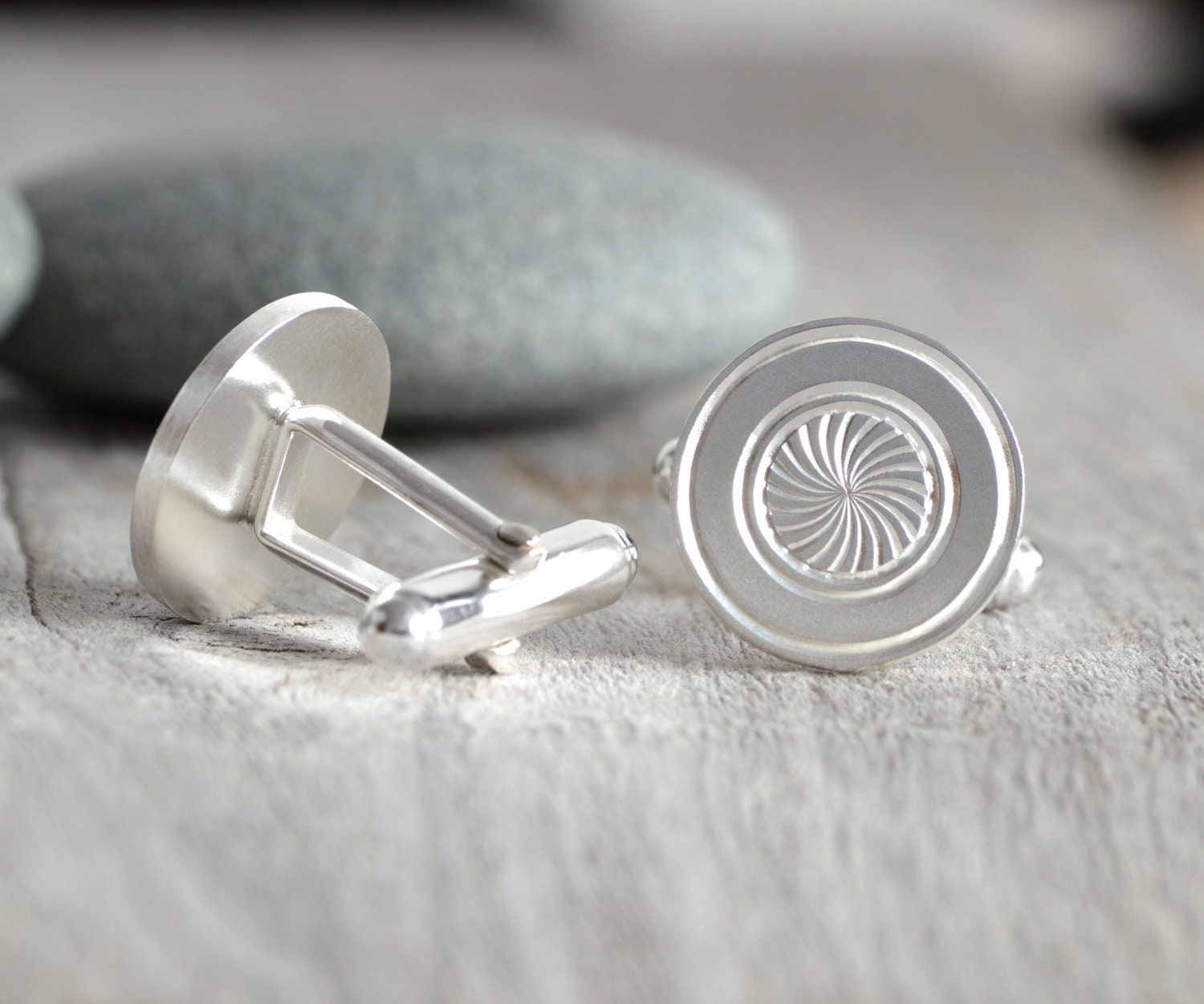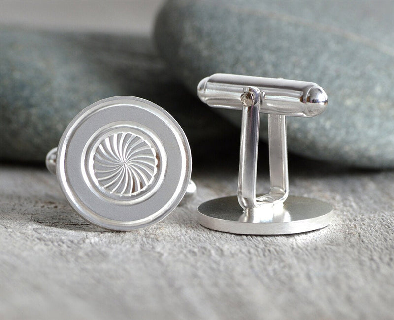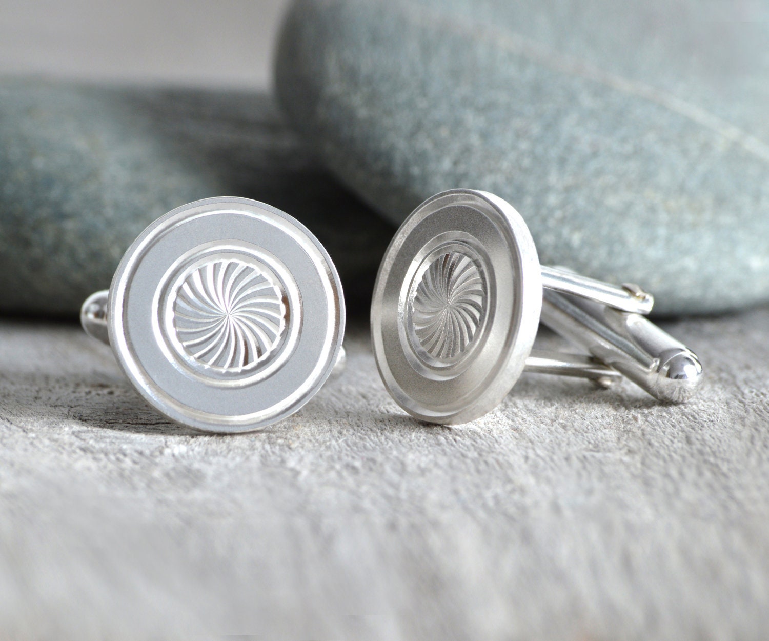 Hand Engraved Cufflinks in Sterling Silver, Classic British Cufflinks