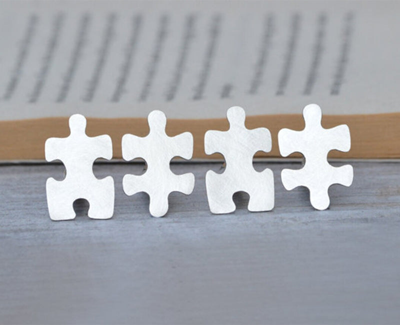 These jigsaw puzzle cufflinks are handmade at my small studio Southwest England, UK.