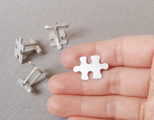 Jigsaw Puzzle Cufflinks in Sterling Silver, Jigsaw Puzzle Cufflinks with Personalized Message