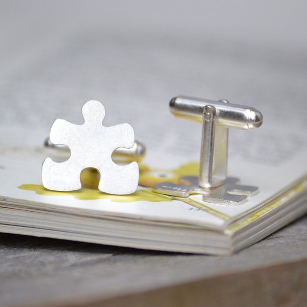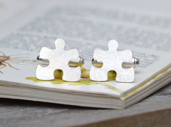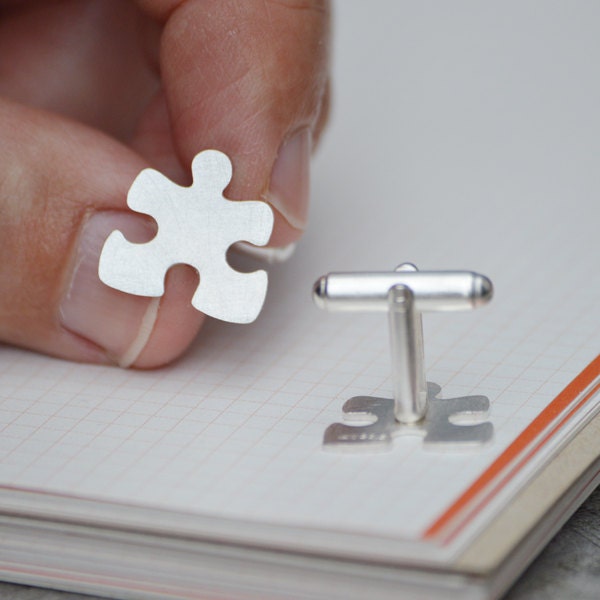 Jigsaw Puzzle Cufflinks in Sterling Silver, Personalized Puzzle Cufflinks