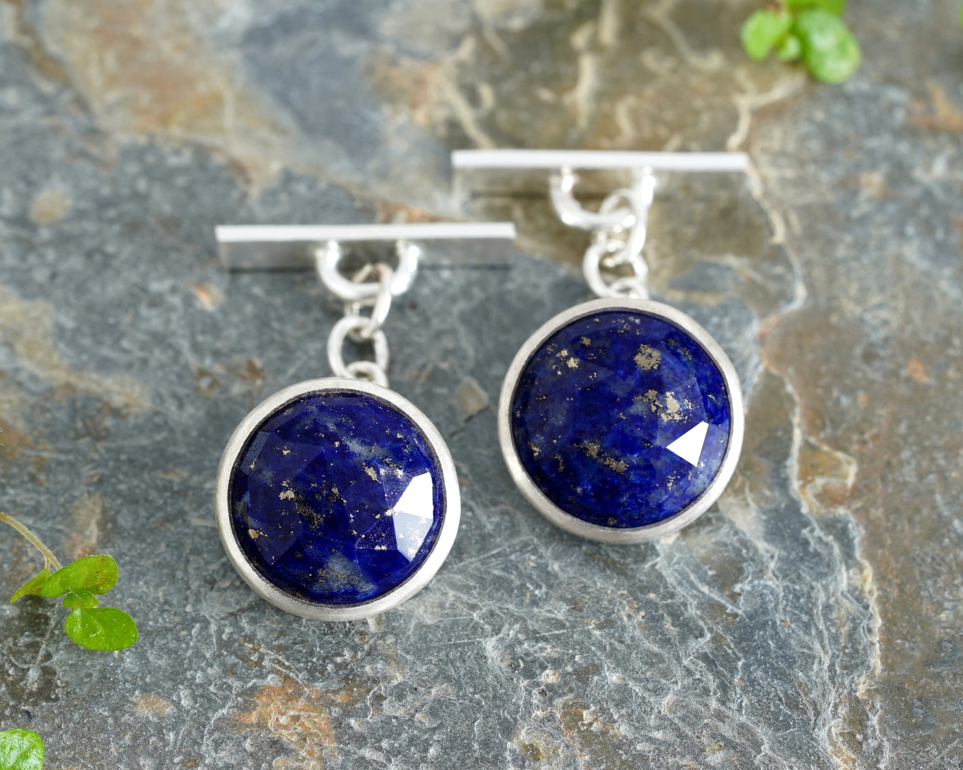 These round lapis lazuli cufflinks cufflinks are handmade in Cornwall, UK.