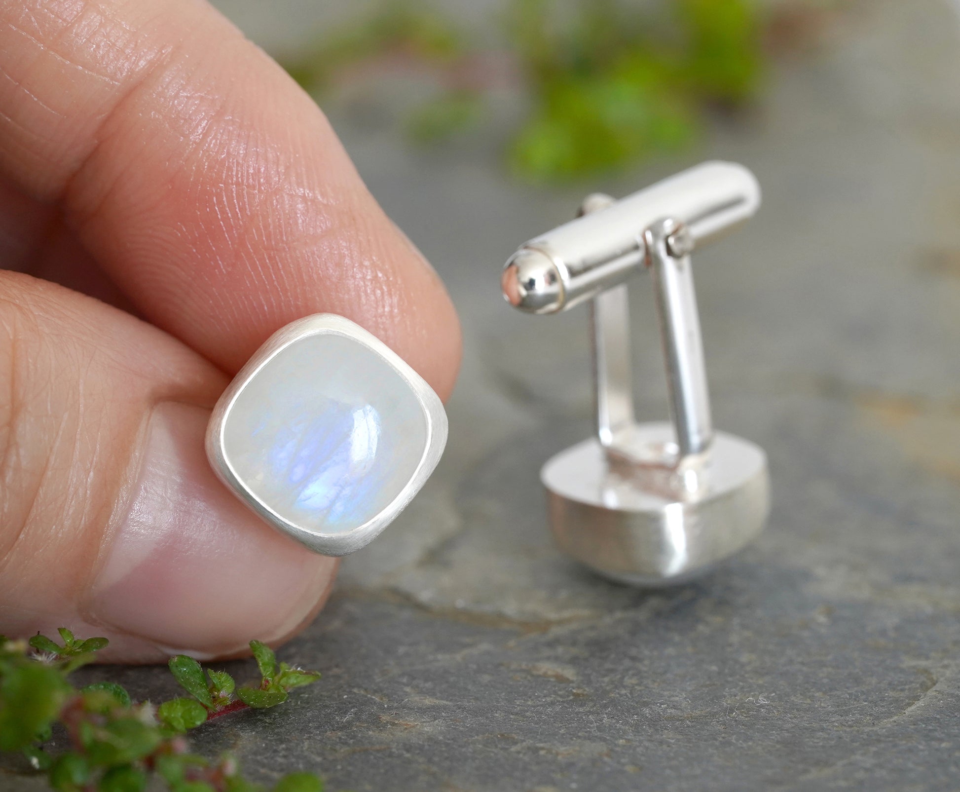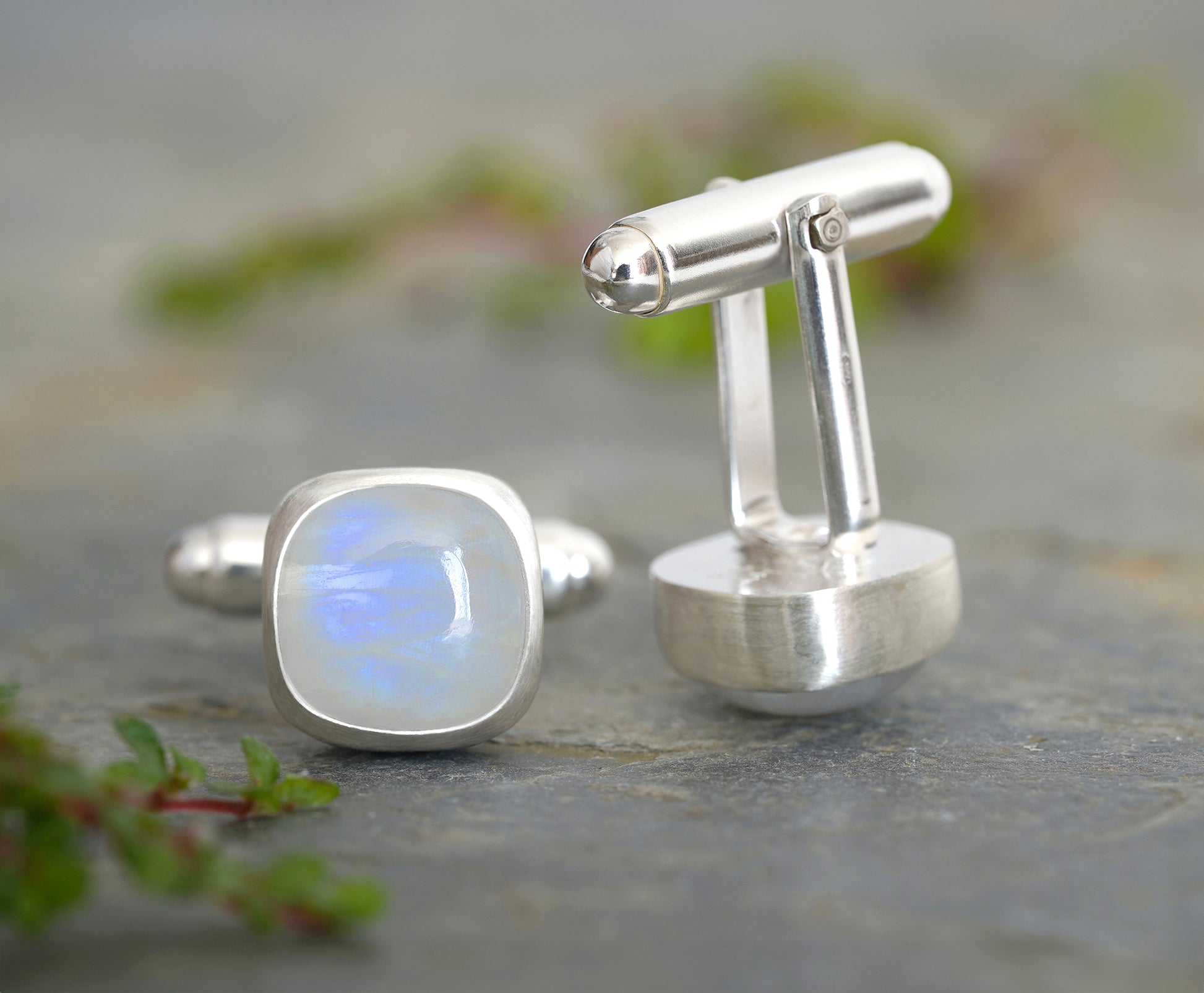 The mysterious blue flash on the moonstones will catch your eye when you are rocking the cufflinks slowly.