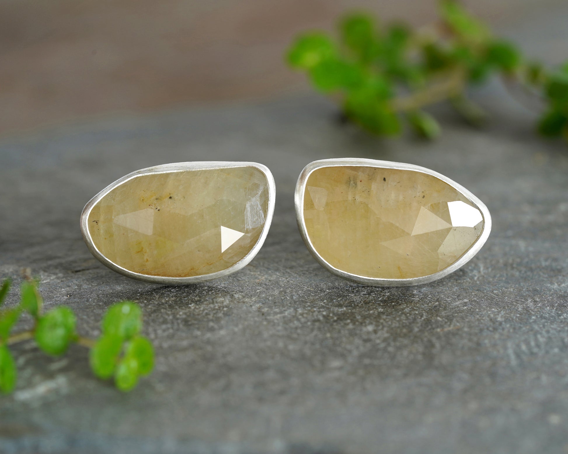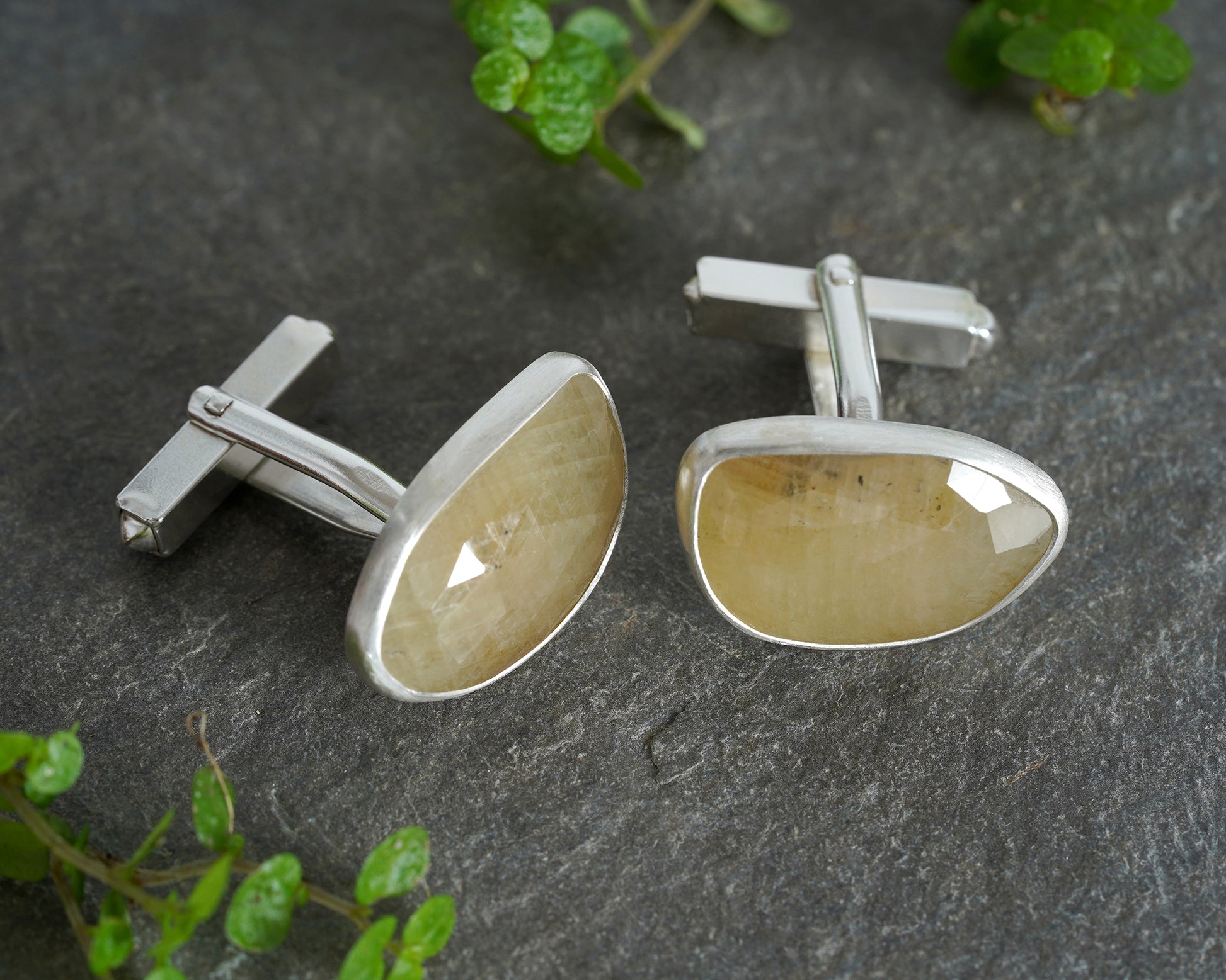 These natural yellow sapphire cufflinks are handmade at my studio in the UK.