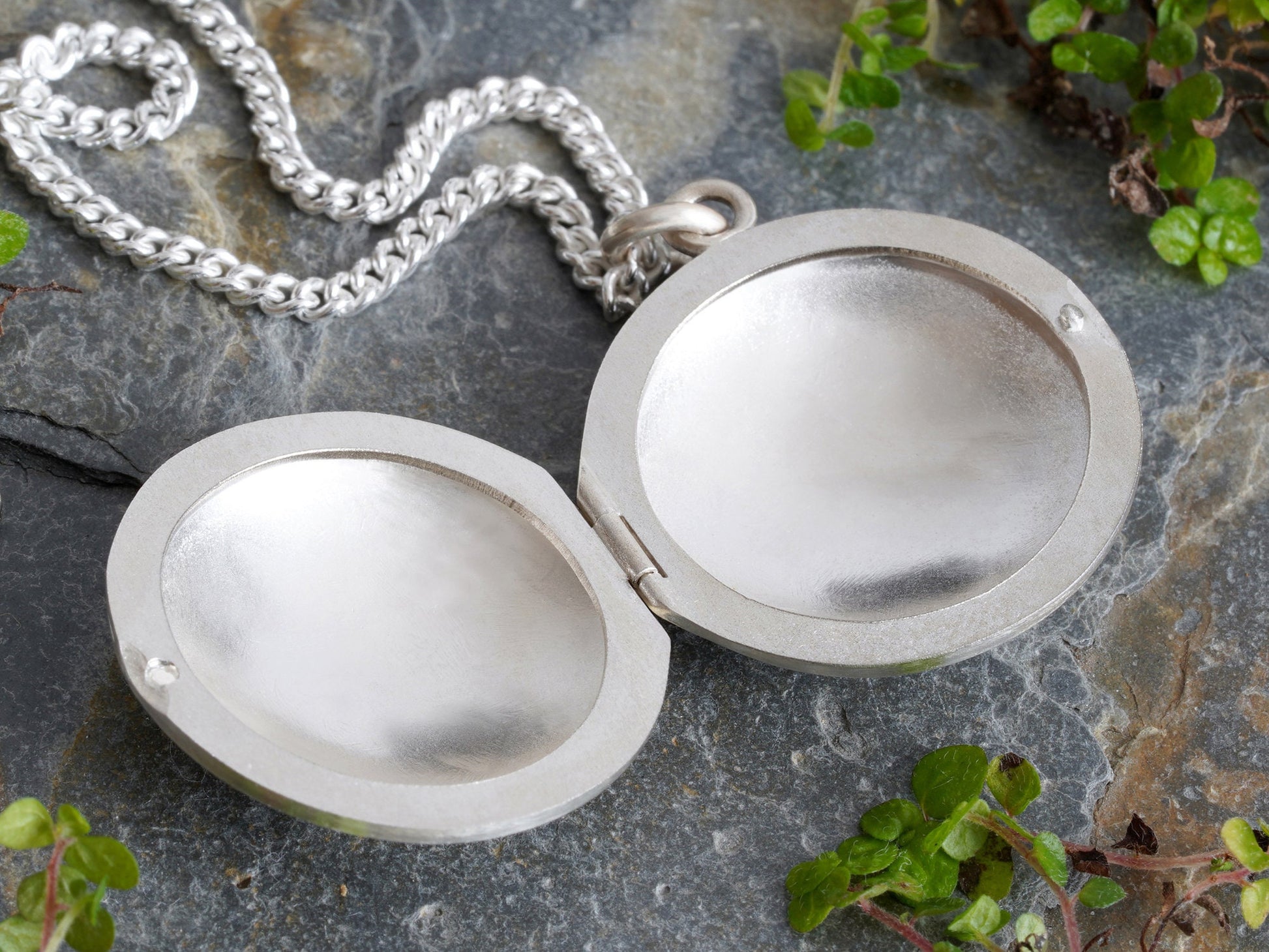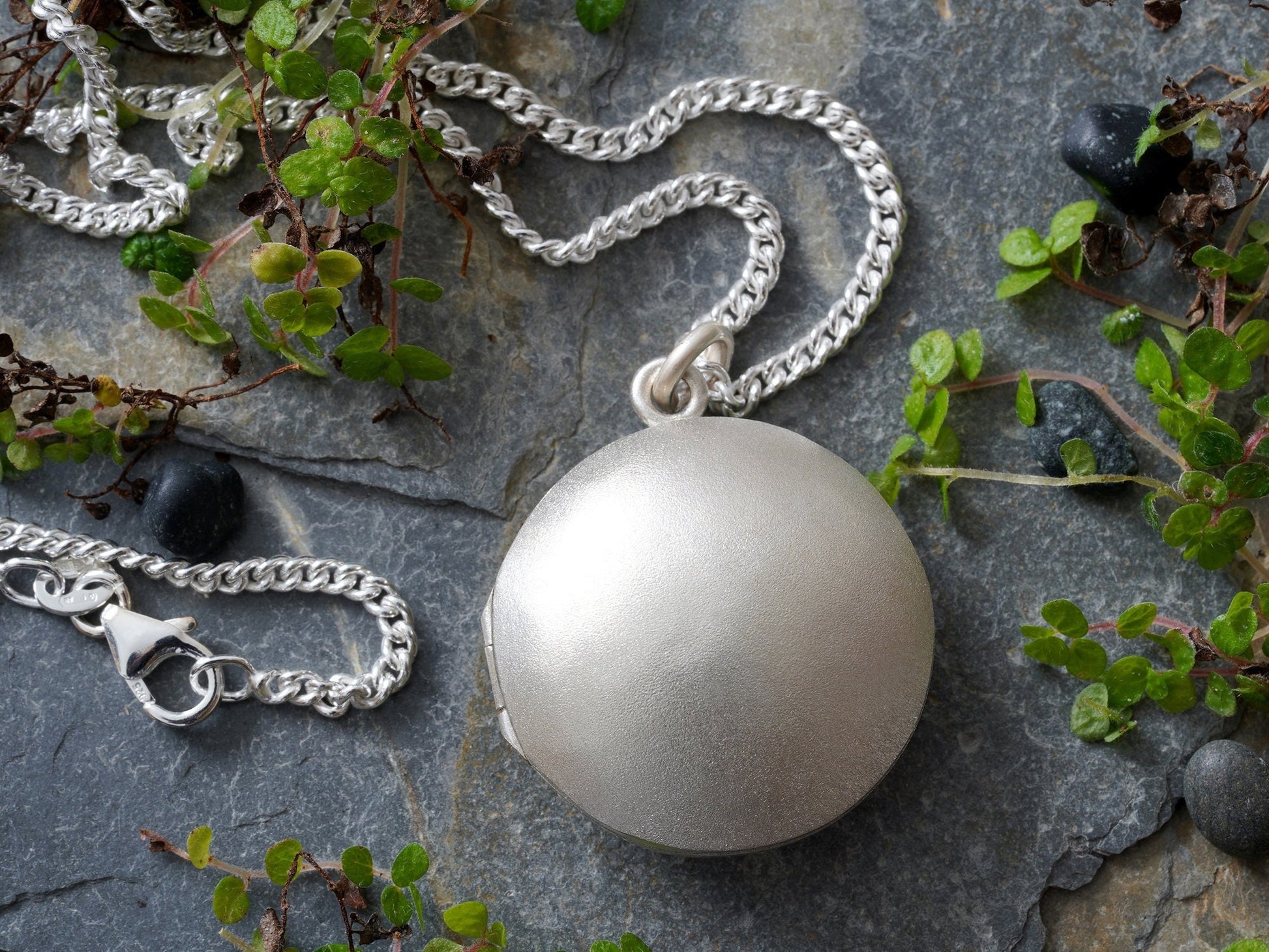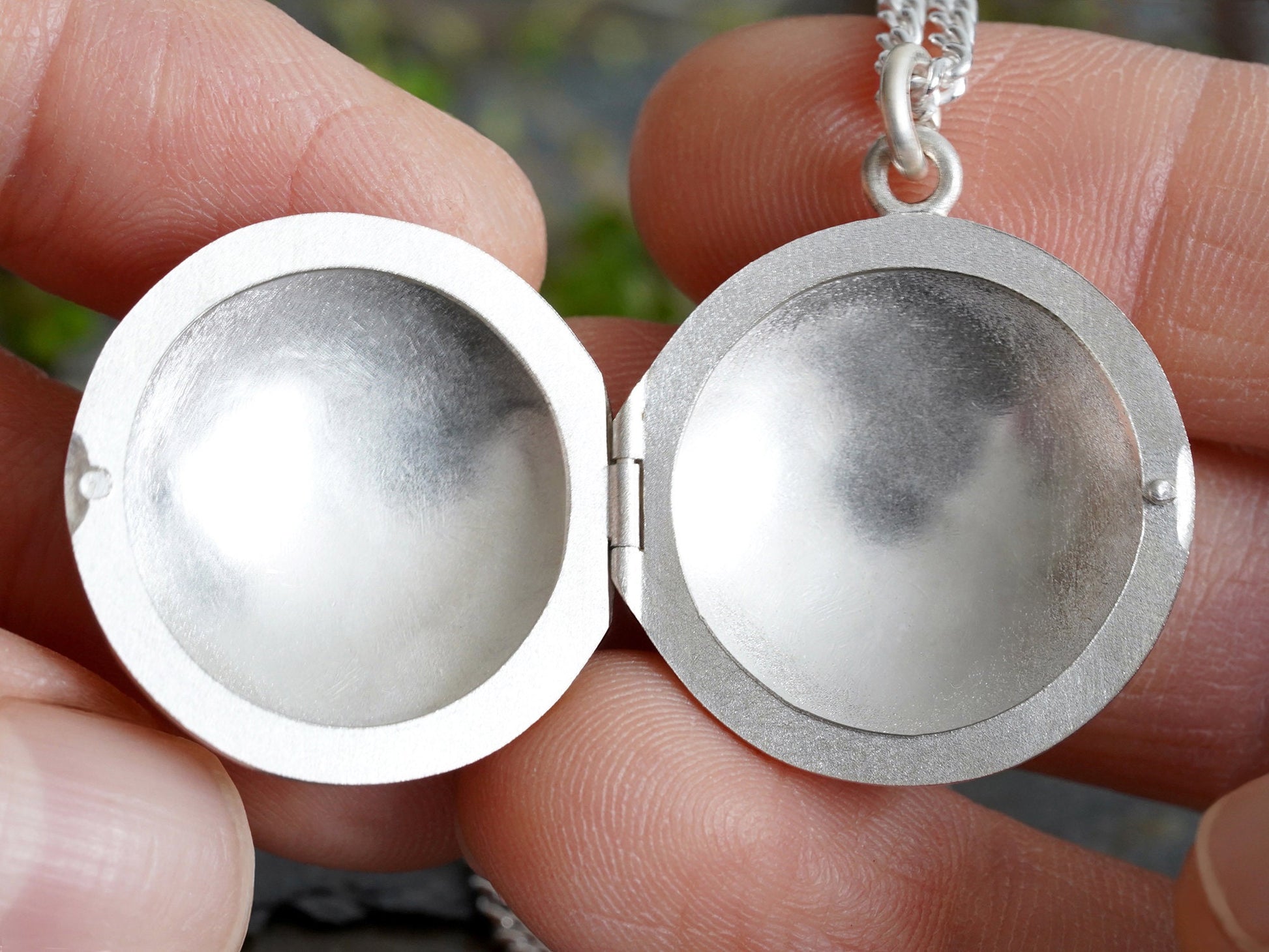 Round Photo Locket Necklace in Sterling Silver, Small Handmade Locket Necklace, Secret Locket Box in Silver