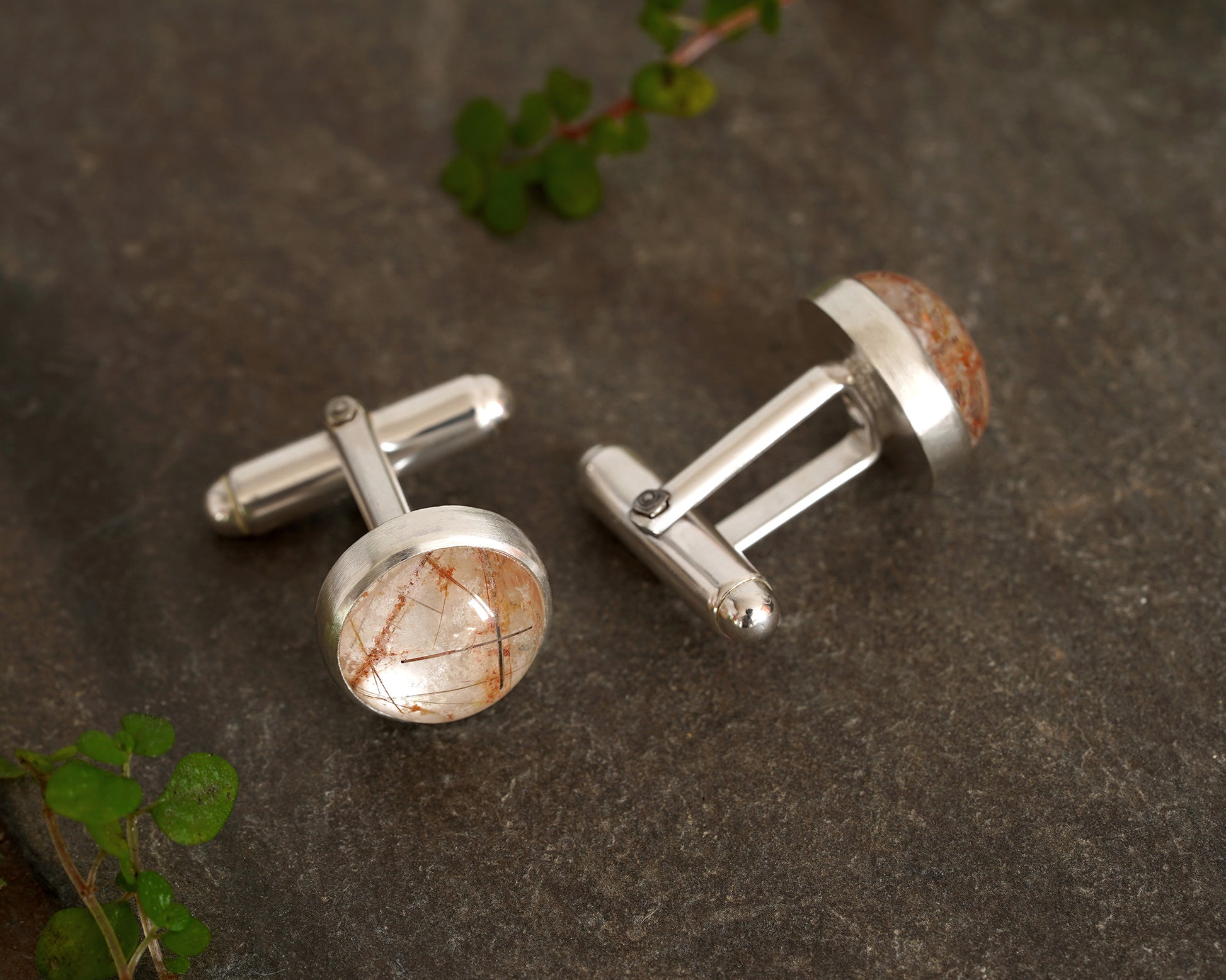 Rutilated Quartz Cufflinks in Solid Sterling Silver