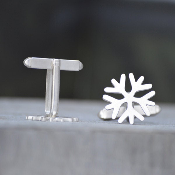 Snowflake Cufflinks in Sterling Silver, Personalized Snowflake Cufflink
