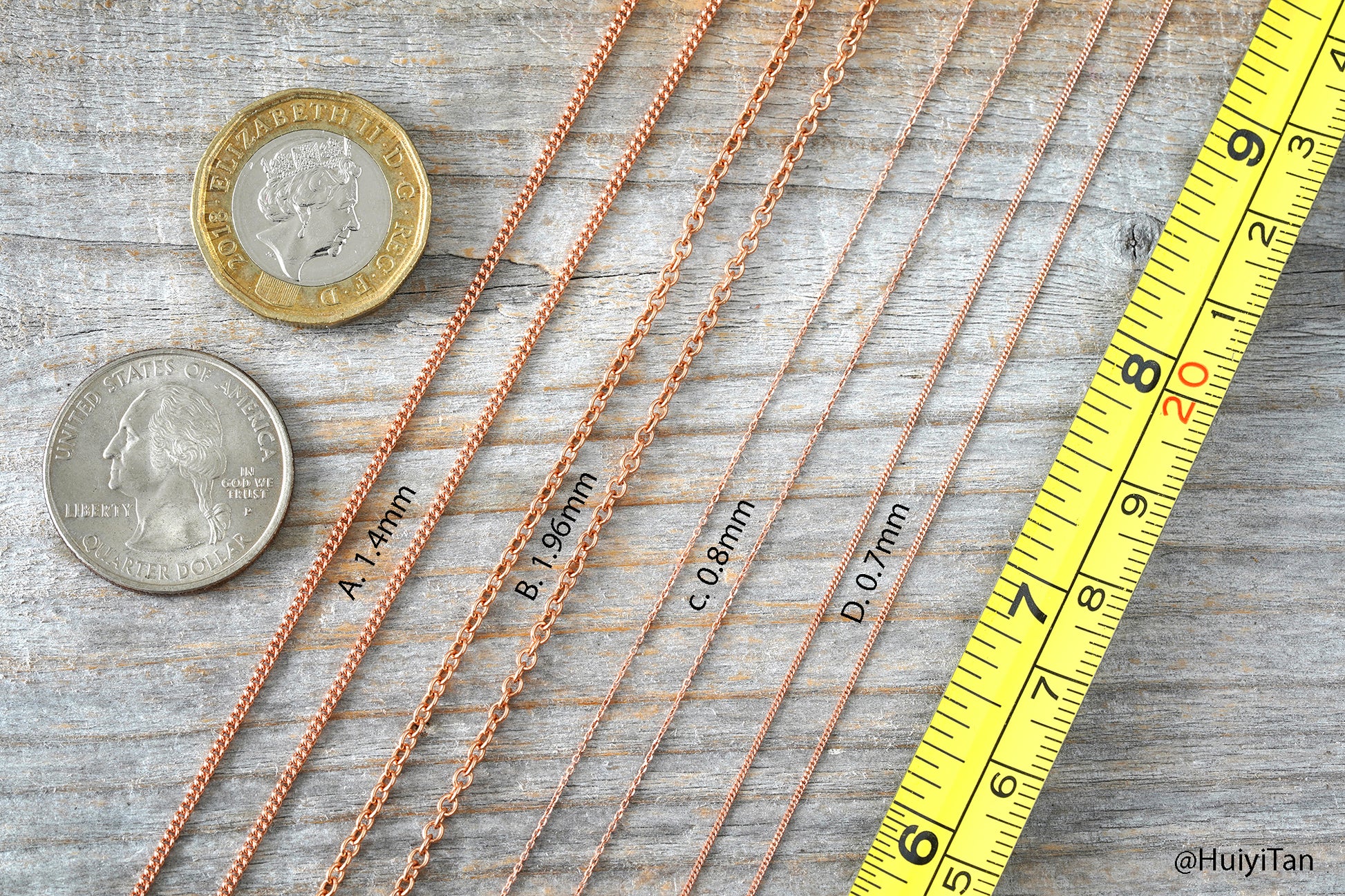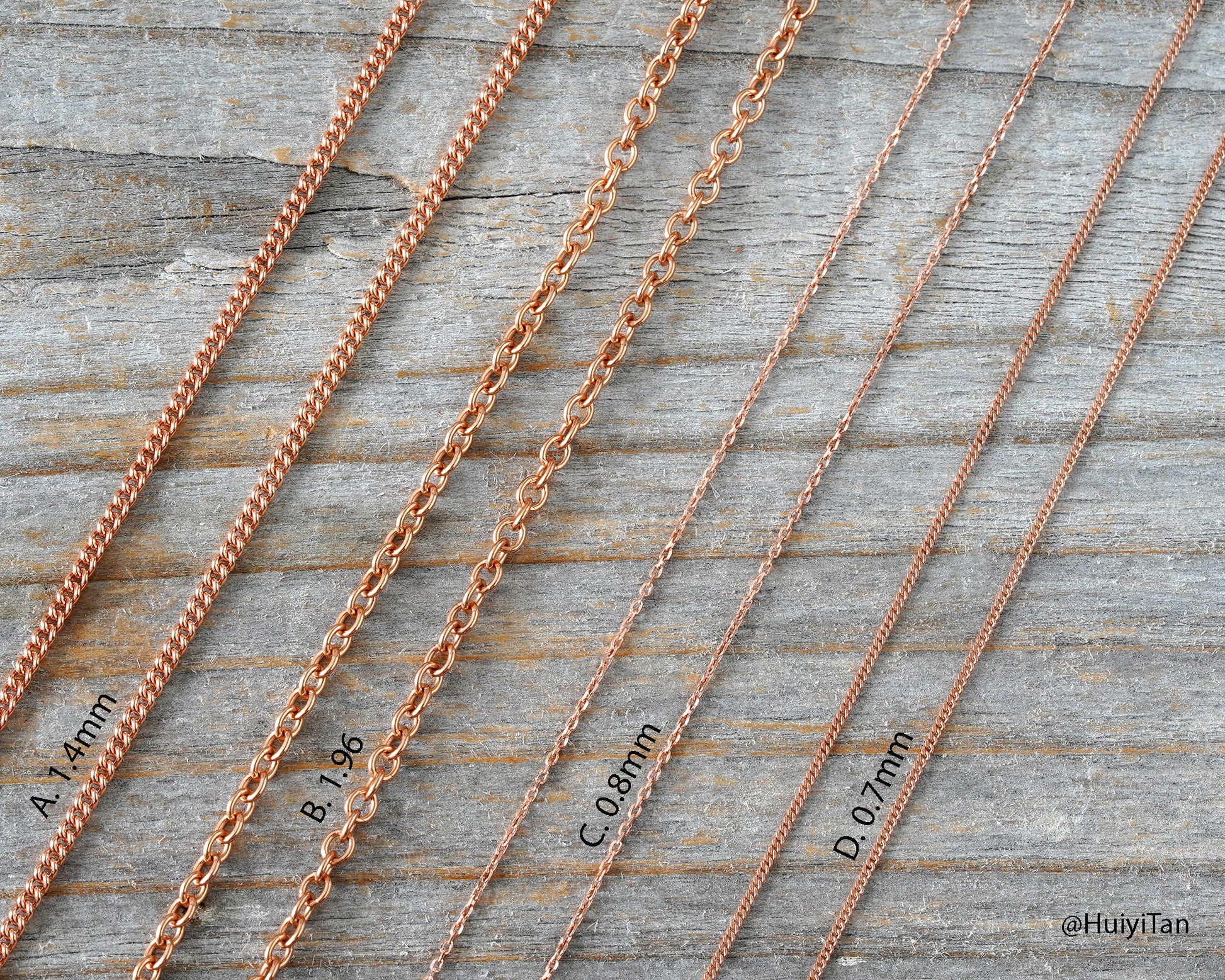 9k rose gold chains handmade in Cornwall, UK. Each chain comes with a clasp and is ready to wear. All jump rings are soldered/closed.