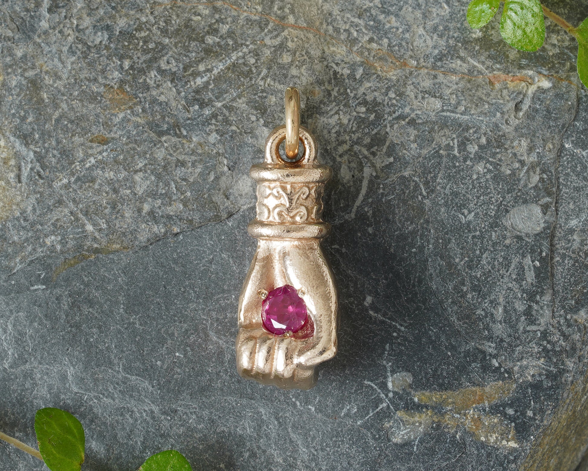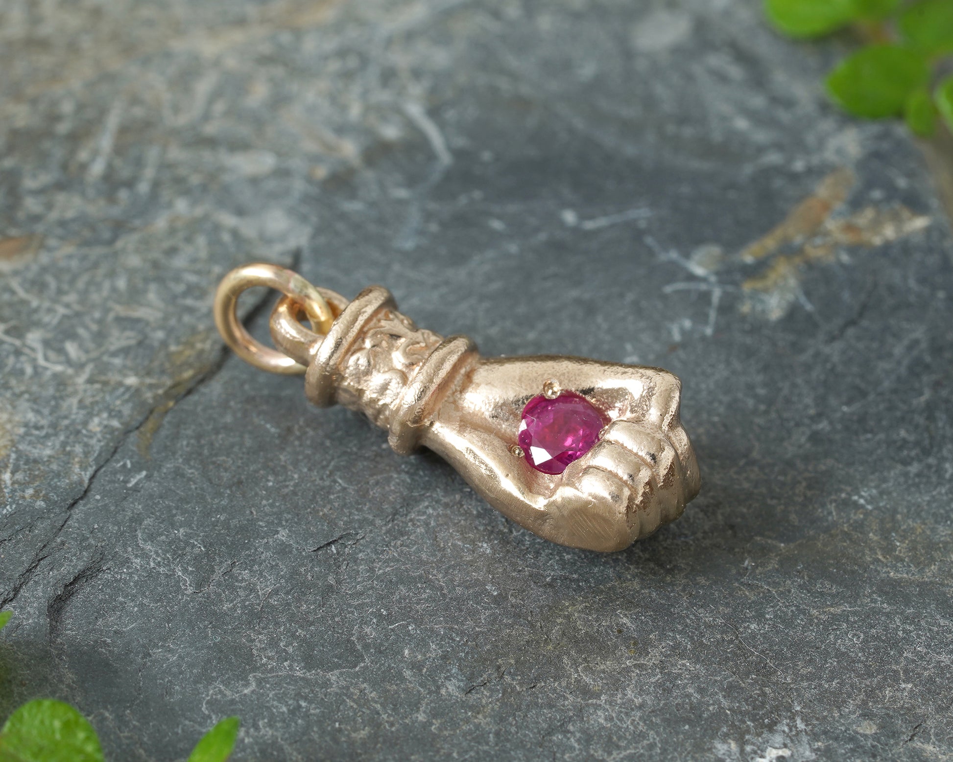 This for one solid 9ct yellow gold hand pendant with ruby.