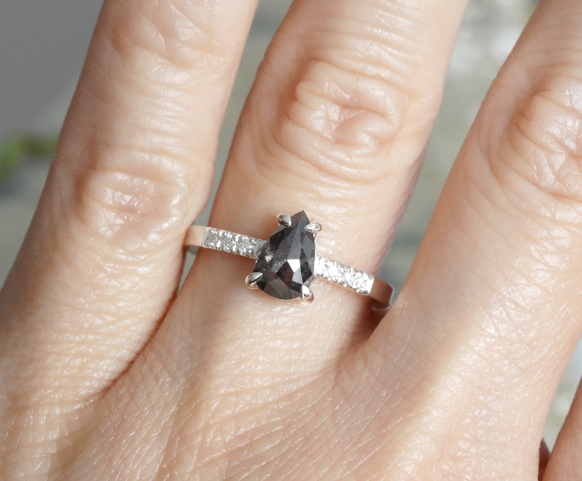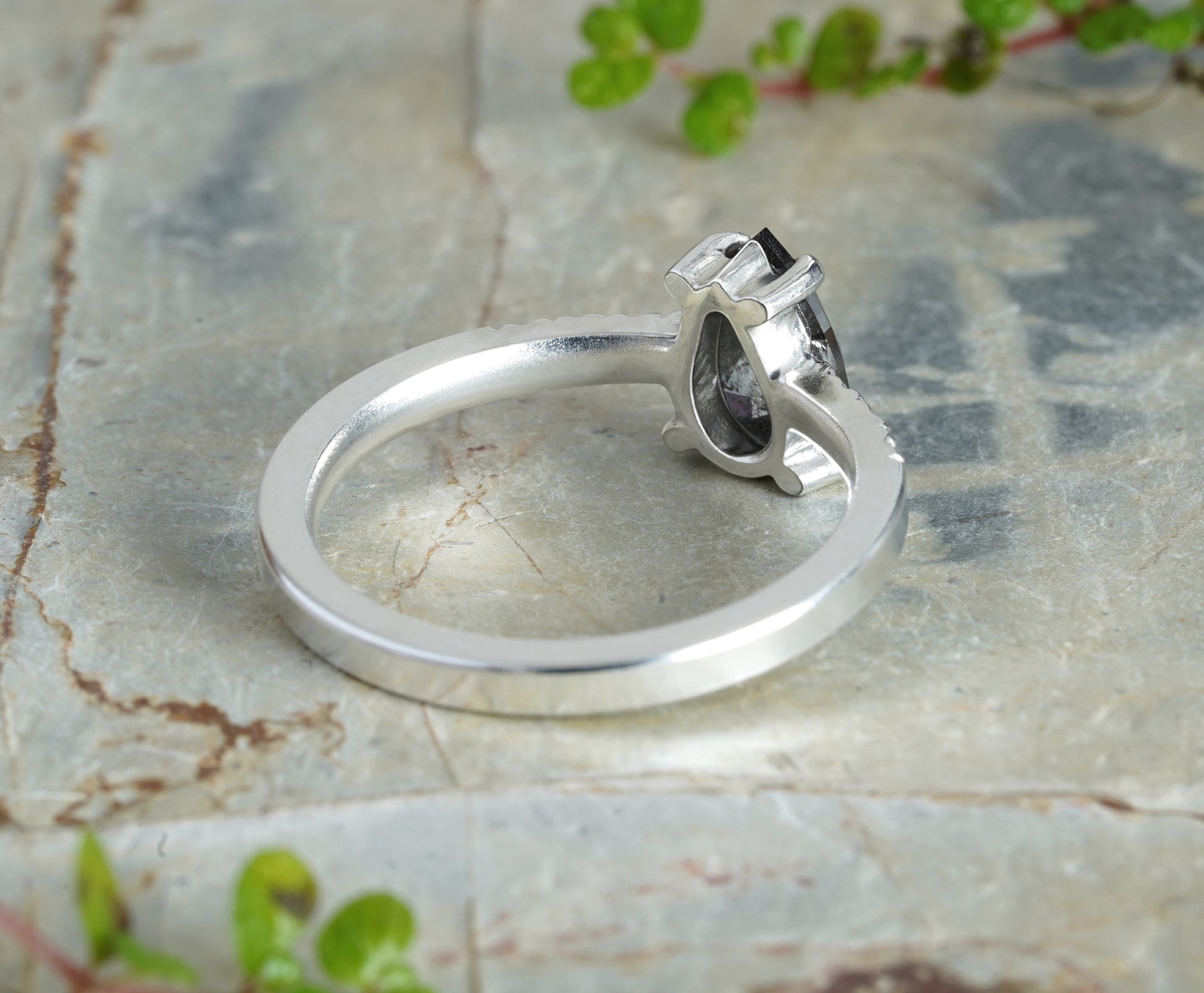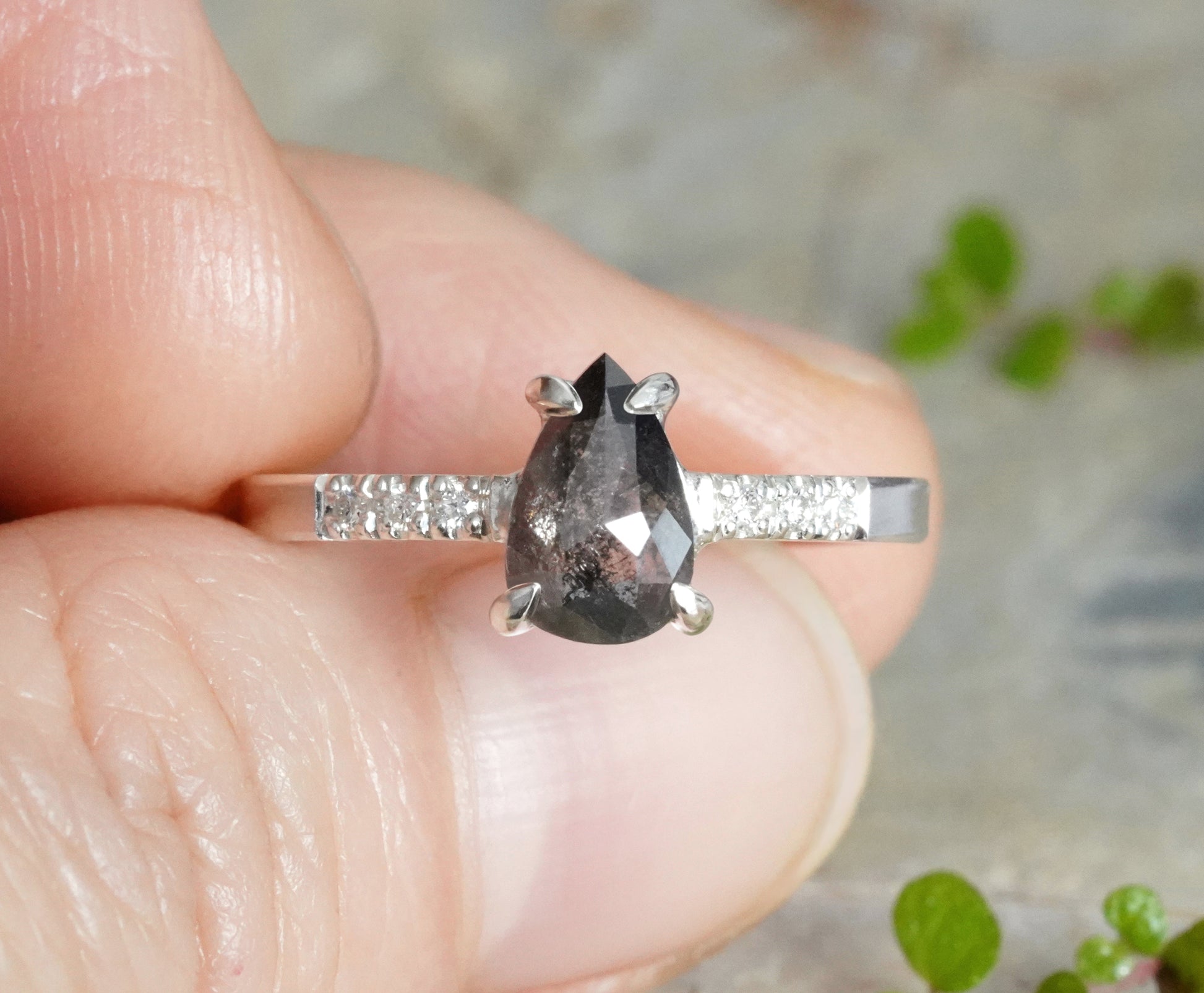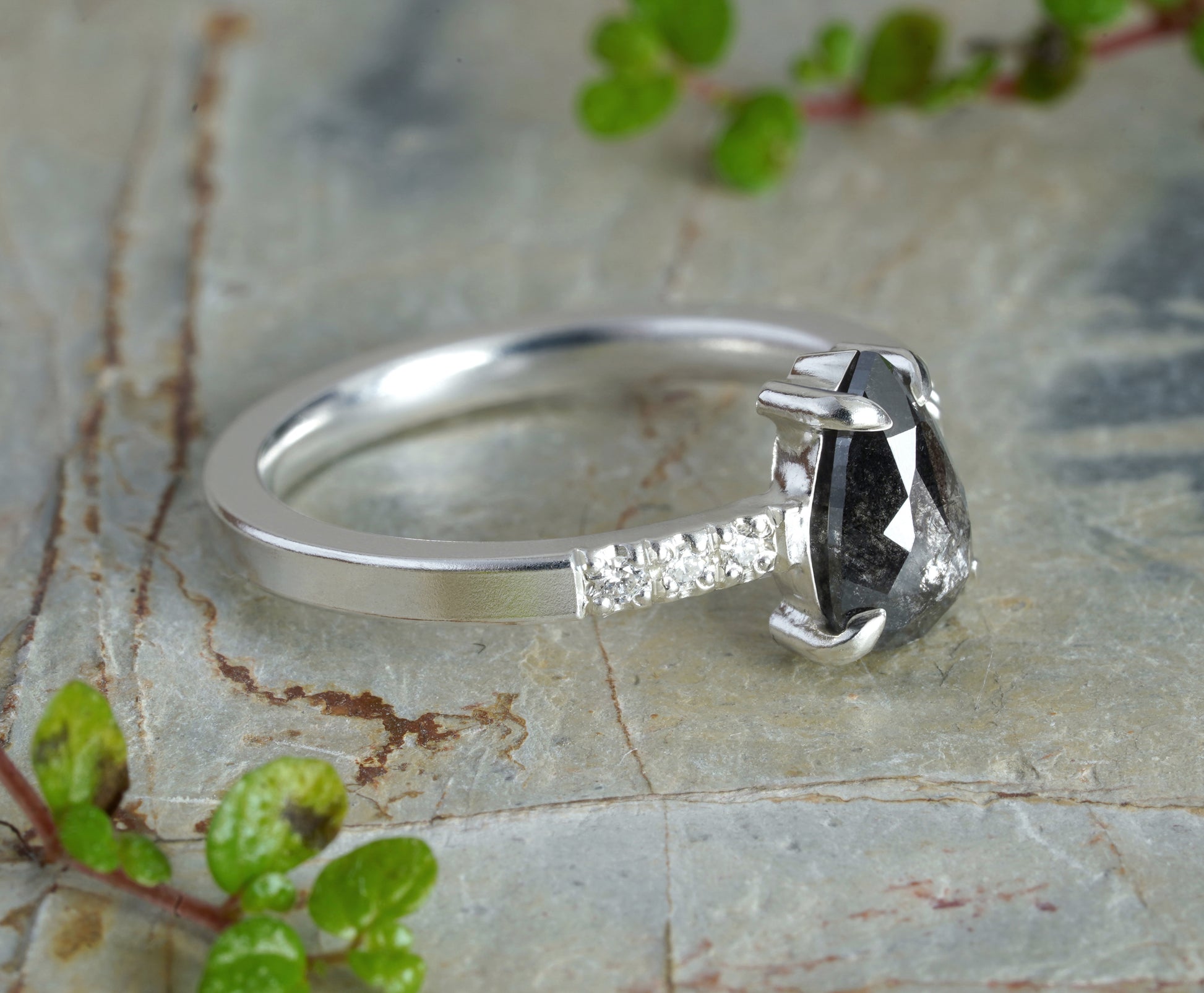 Material of the ring: solid platinum (hallmarked) and natural salt & pepper diamond