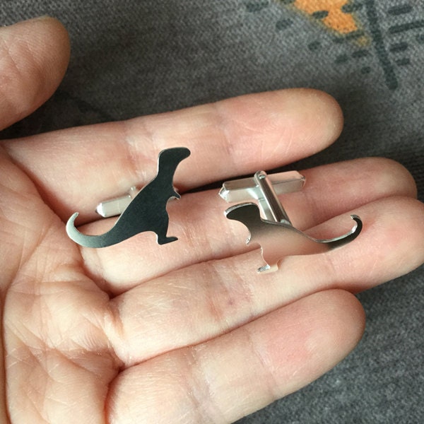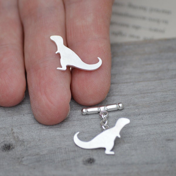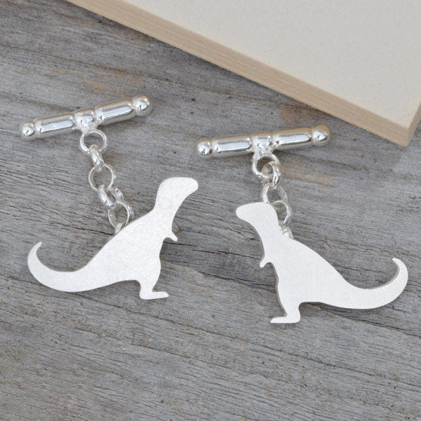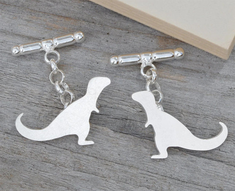 T-Rex Dinosaur Cufflinks in Sterling Silver, Personalized Dinosaur Cufflinks