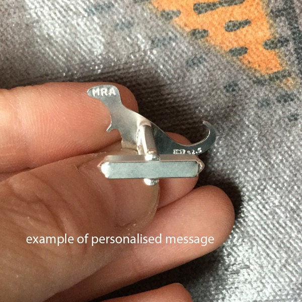 These t-rex cufflinks are handmade at my studio in Cornwall, UK. You can have your personalized initials on the backs of these cufflinks.