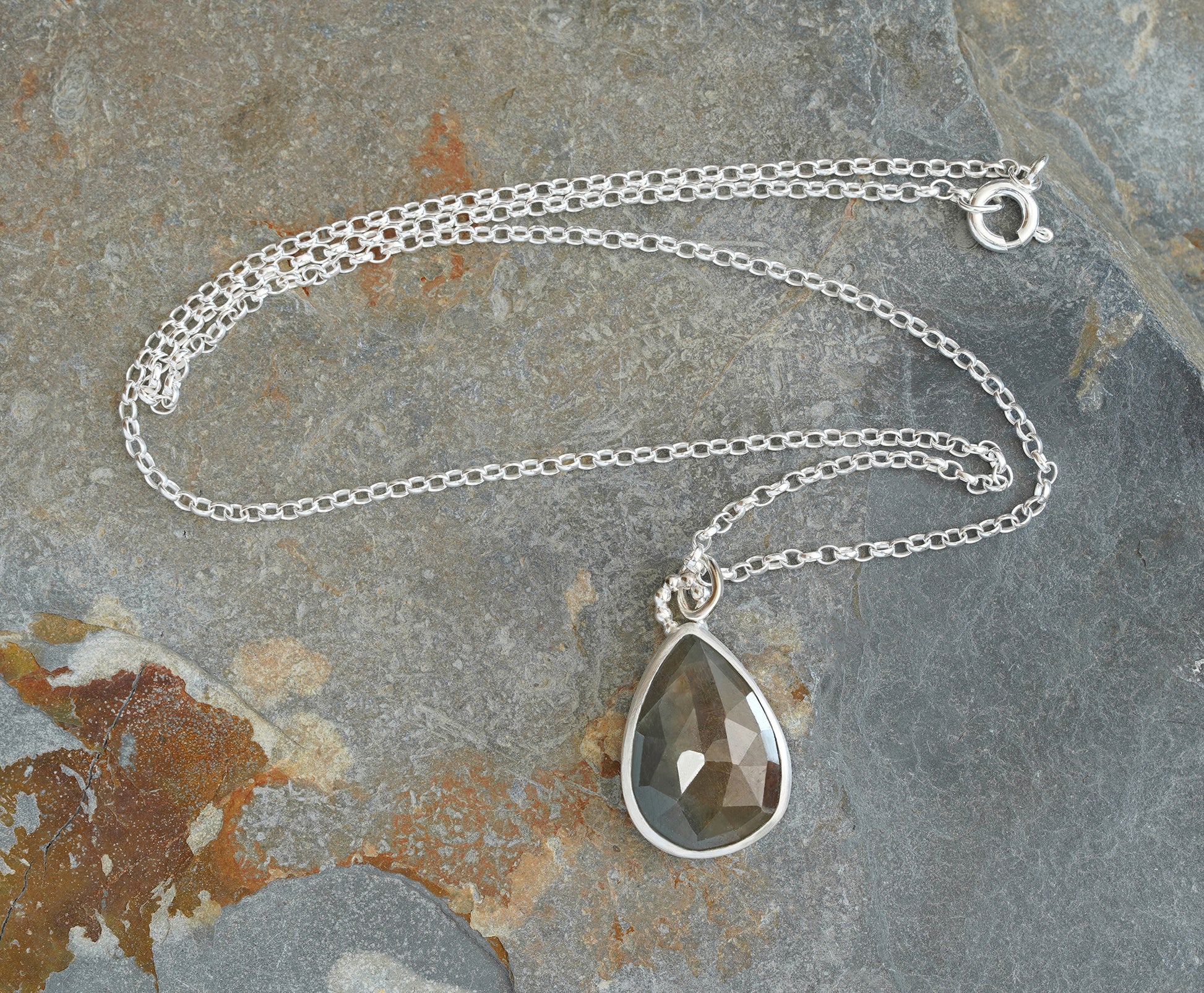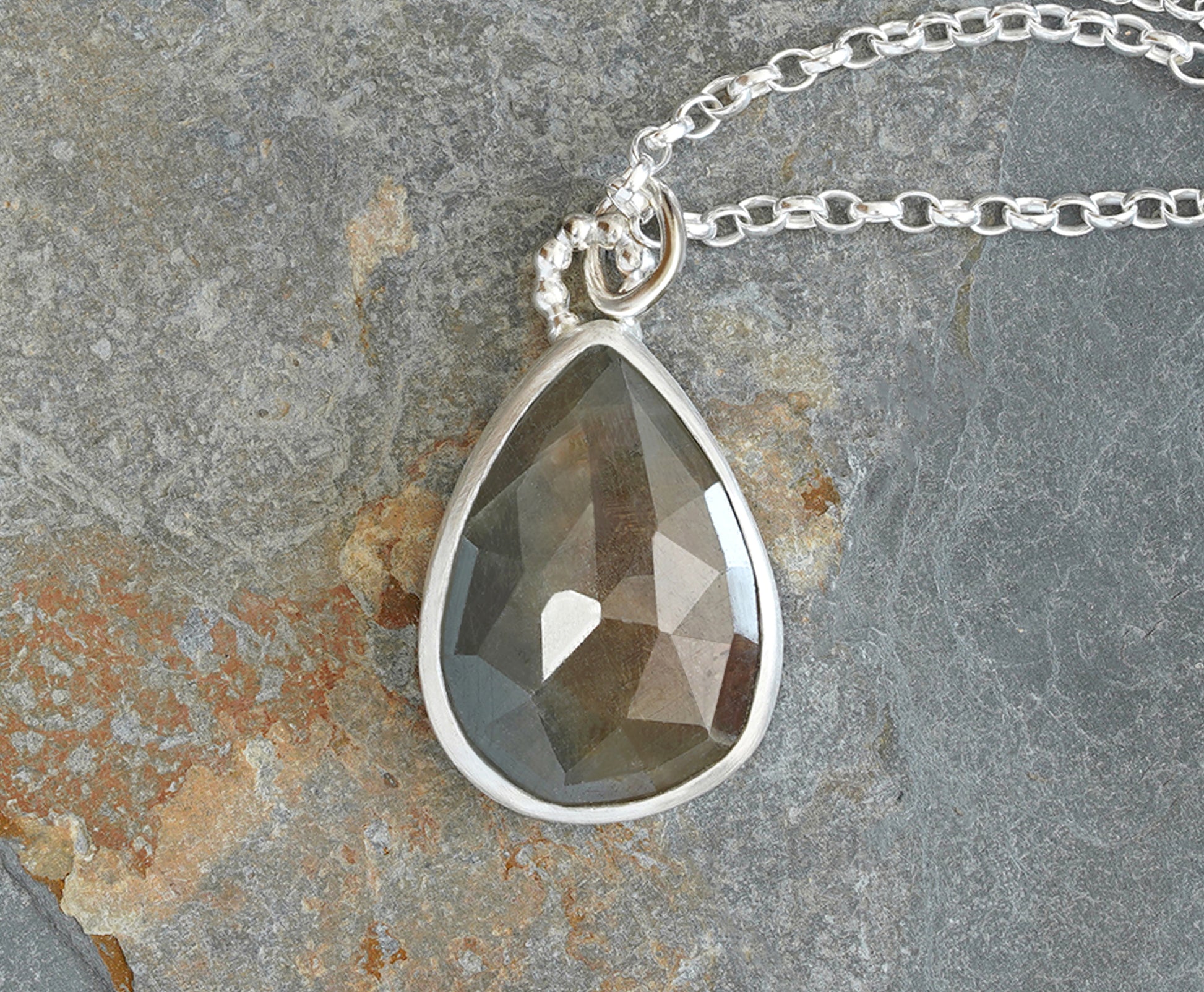 This natural bi colour sapphire necklace shows 2 very interesting colours: Olive and Cambridge Blue.