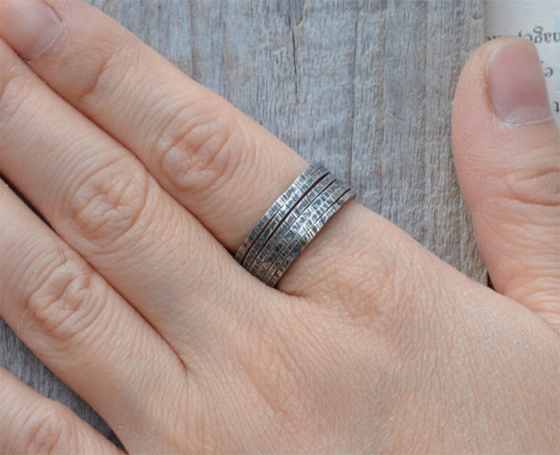 Textured Black or Bright Silver Rings, Stackable Silver Ring