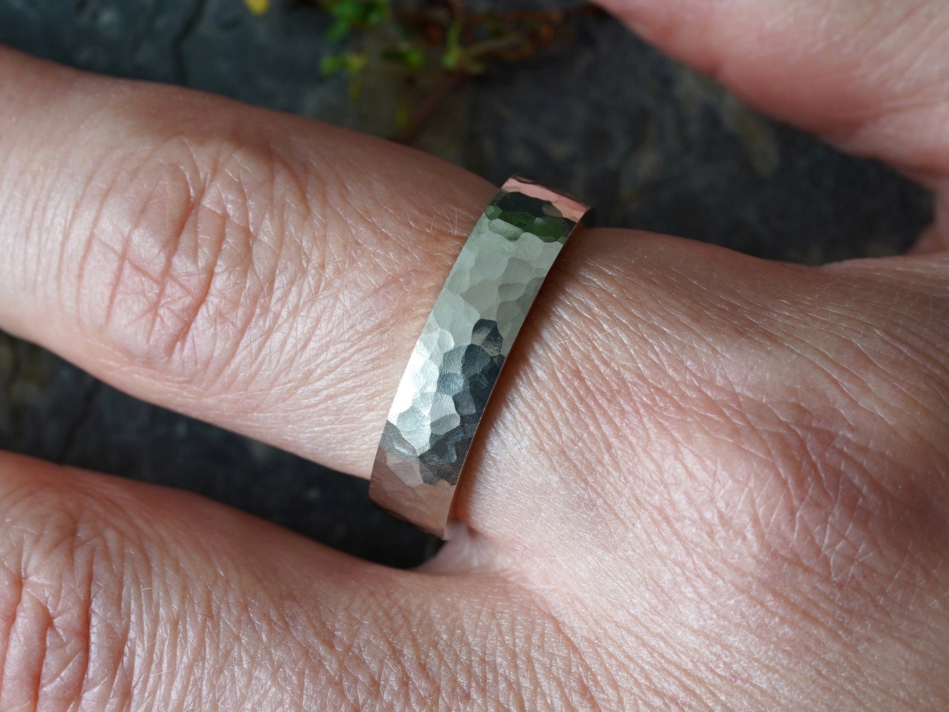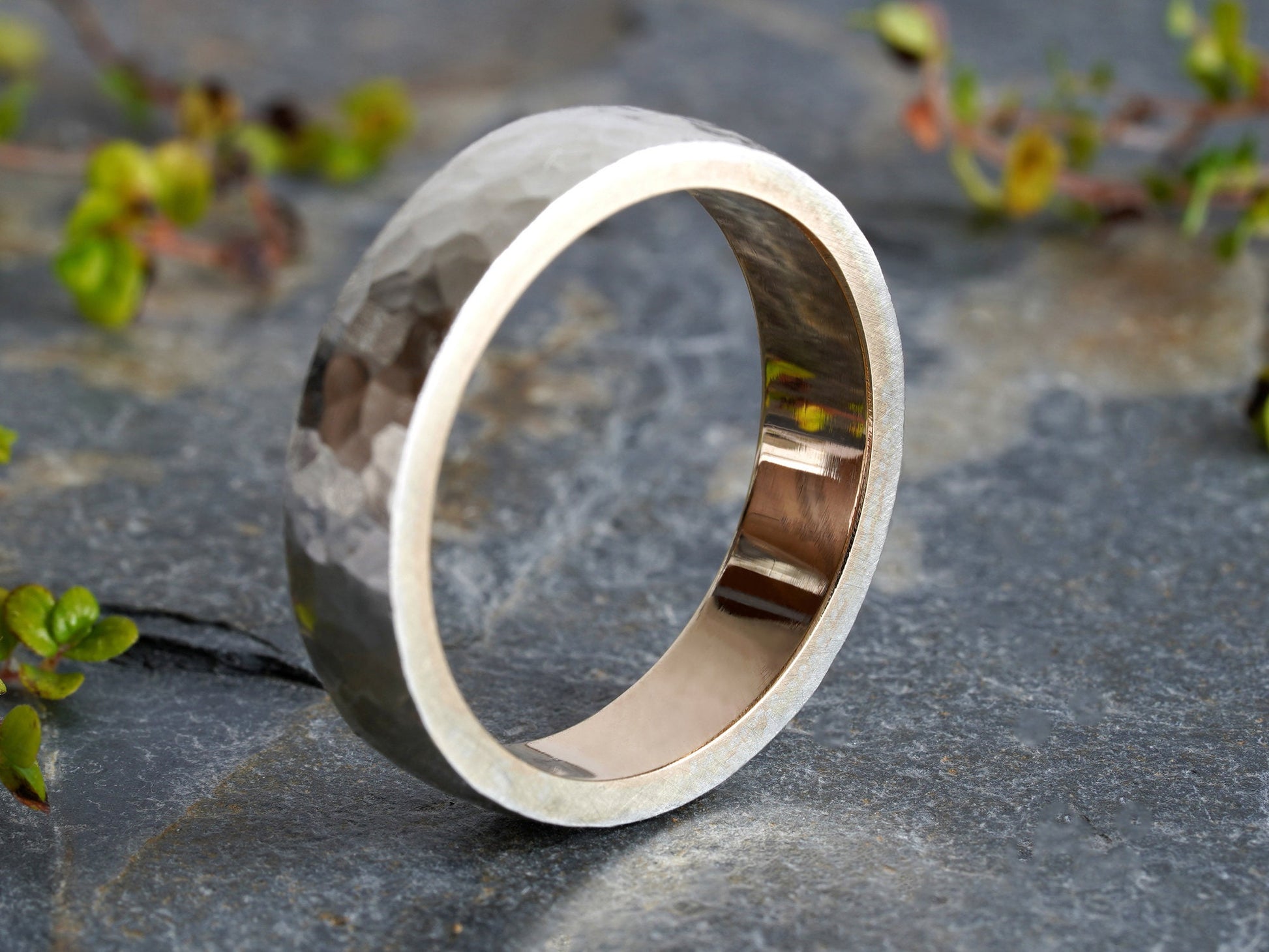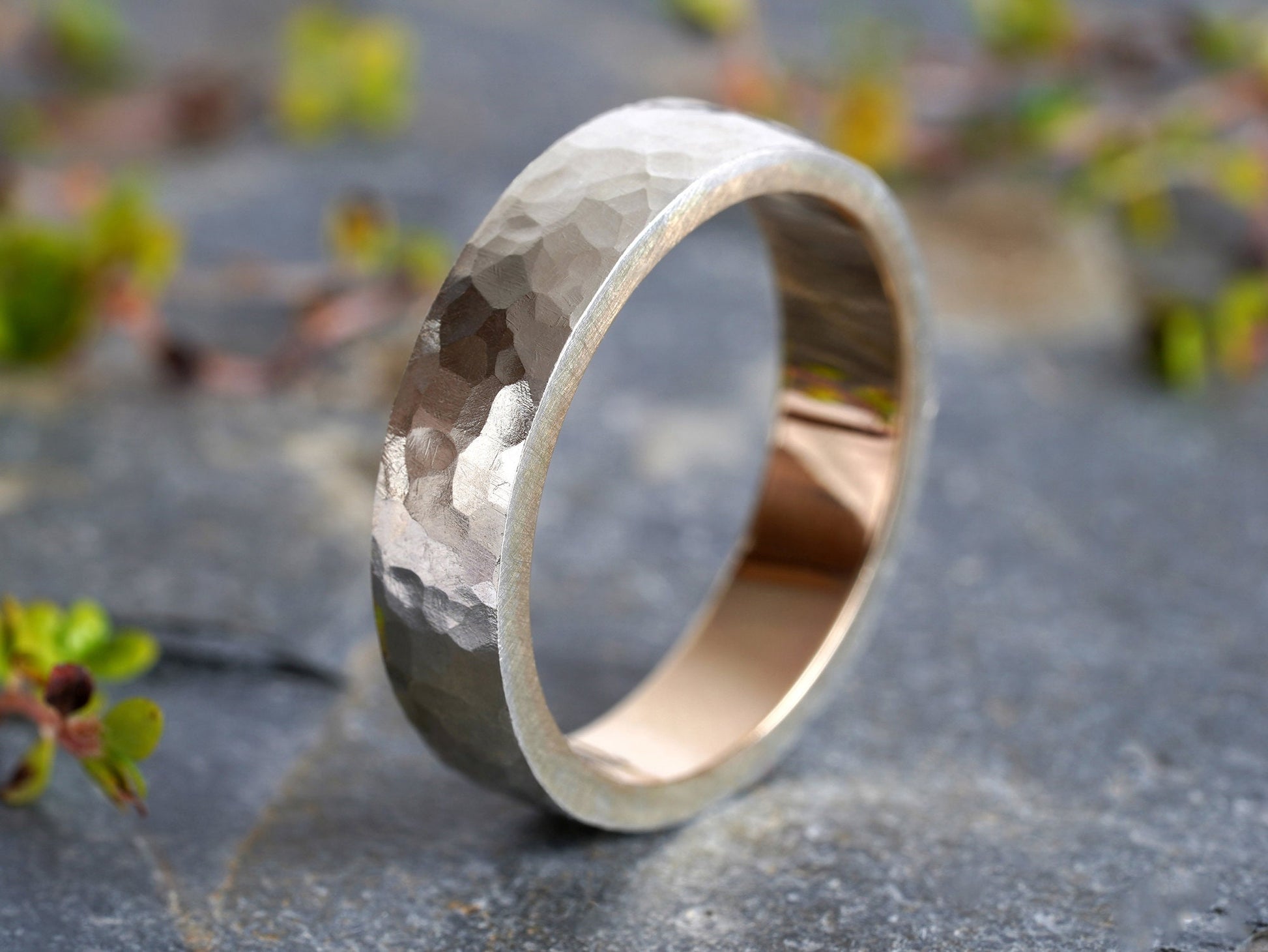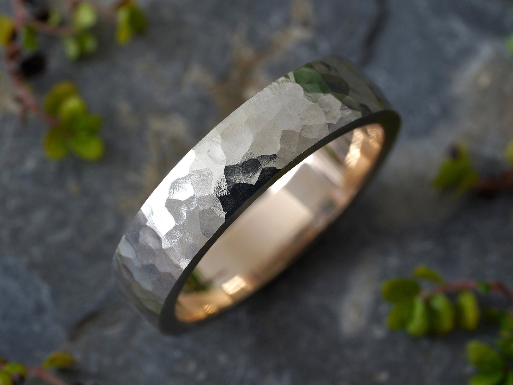 Two Tone Wedding Band with Hammered Effect, 2 Colour Wedding Ring, 6mm Rustic Wedding Band, Made To Order