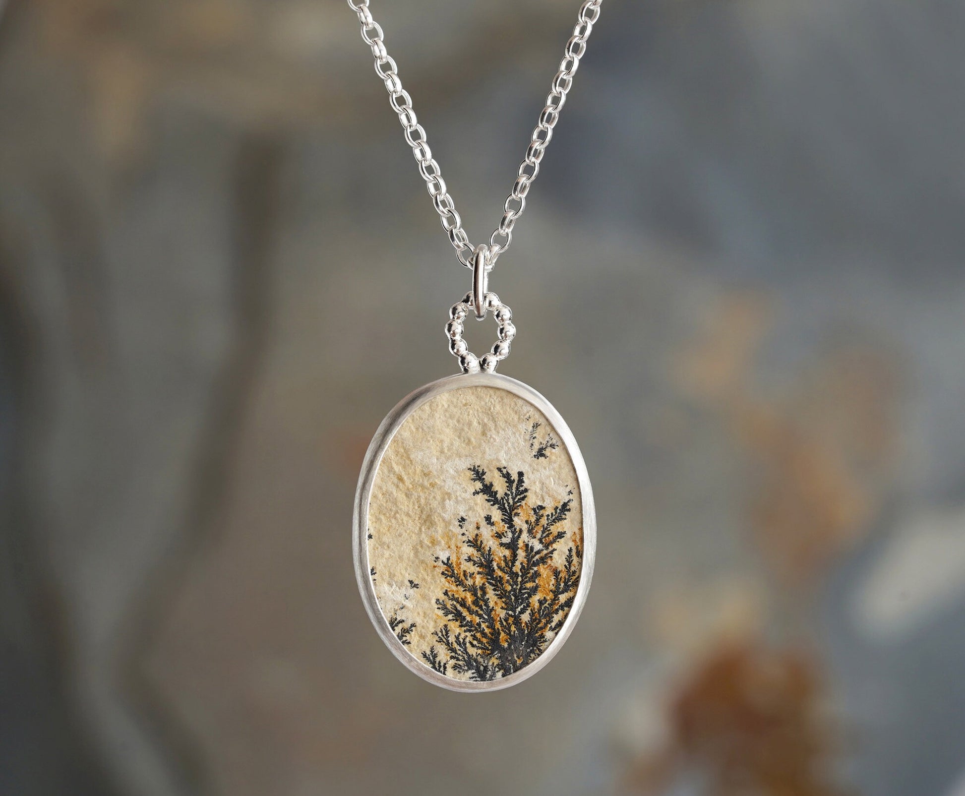 Unique Dendritic Limestone Necklace in Sterling Silver