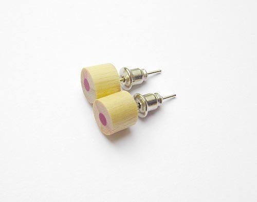Wooden Colour Pencil Stud Earring, Round Pencil Ear Posts
