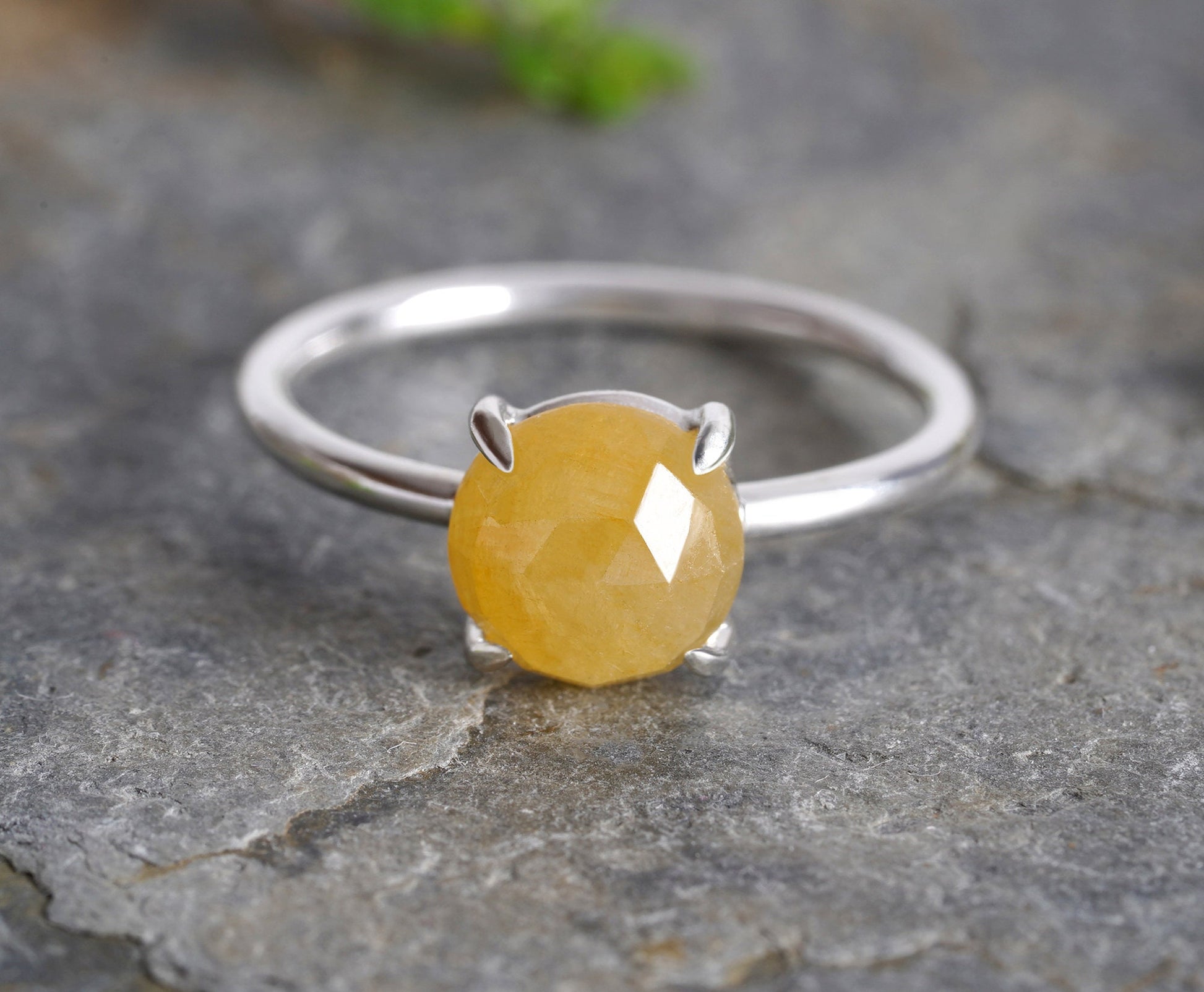 Yellow Sapphire Ring, 7mm Sapphire Ring, 2ct Sapphire Ring